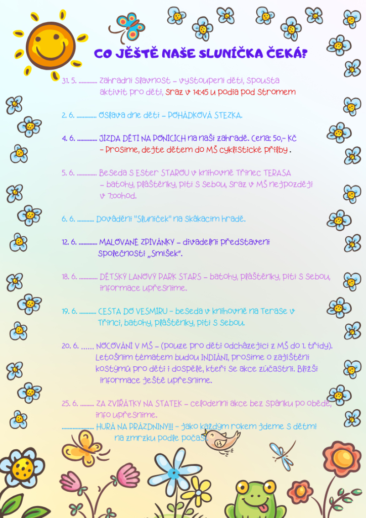 Na plakátech naleznete informace o tom, co ještě čeká naše "Broučky" a "Sluníčka".
