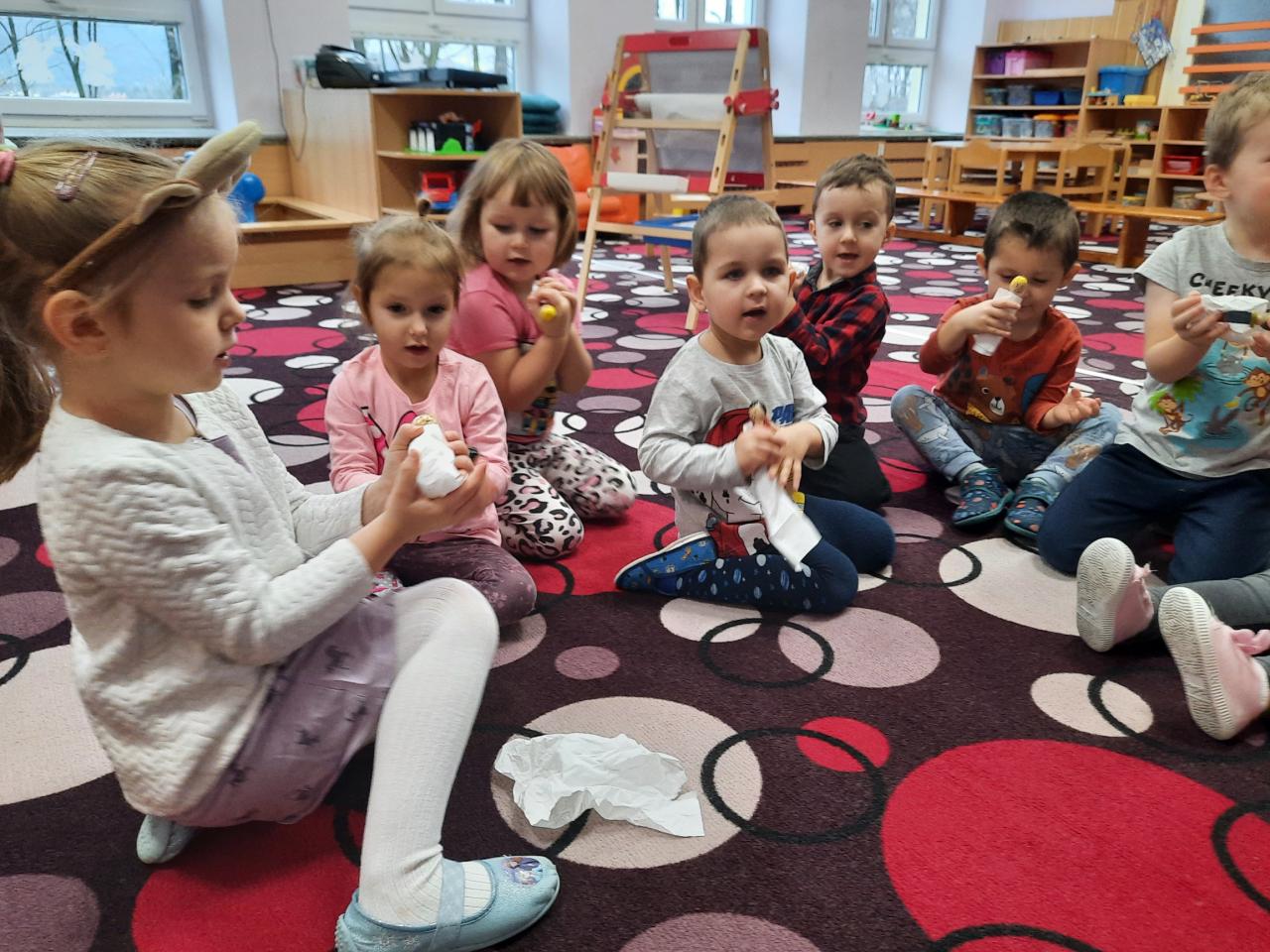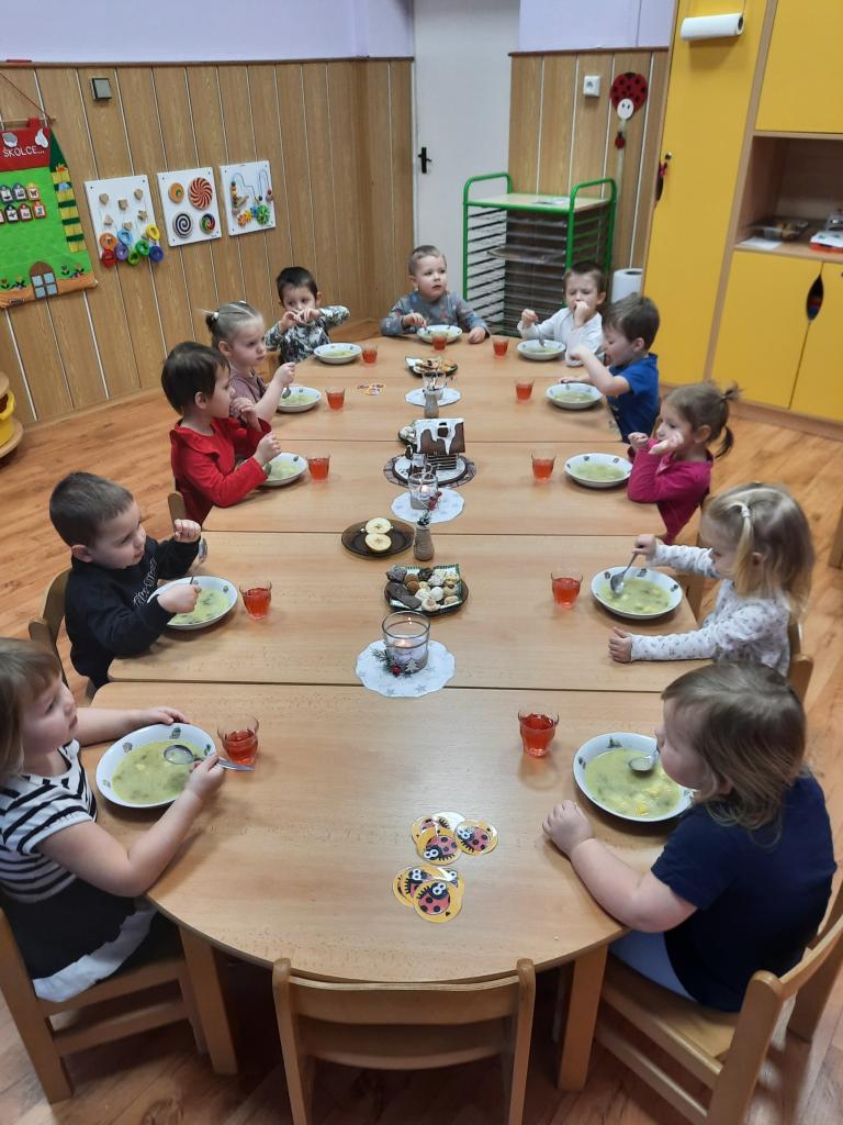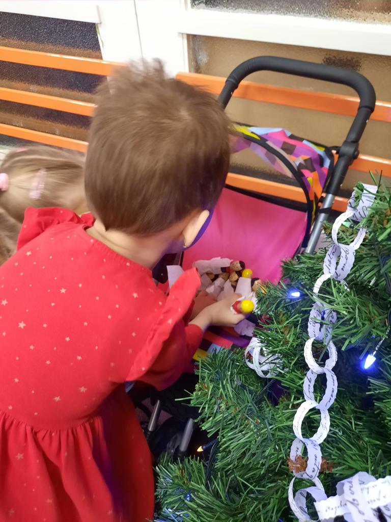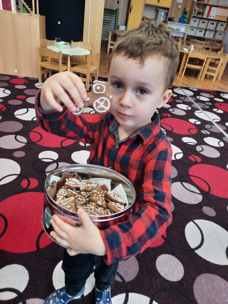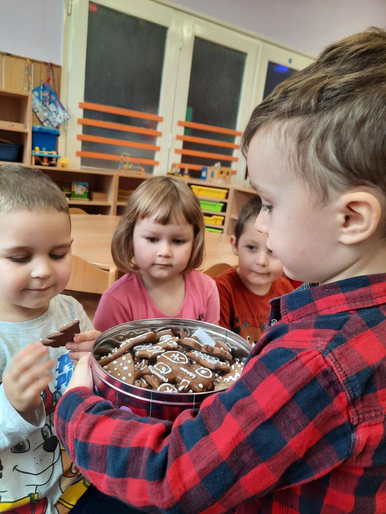 Povídáme si o Vánocích, jak se blíží a jak se na Vánoce připravujeme doma i ve školce. Líbí se nám různé vánoční zvyky a tradice. Po rozkrojení jablíčka jsme uviděli hvězdičku a pozorovali jsme, kam plují lodičky z ořechových skořápek. Také jsme si donesli do školky cukroví k ochutnání a sedíme při jídle u jednoho stolu. Zpíváme koledy, vánoční písničky, učíme se veselá říkadla. A tvoříme vánoční přáníčka pro rodiče. Letos otiskujeme a zdobíme kapříky.