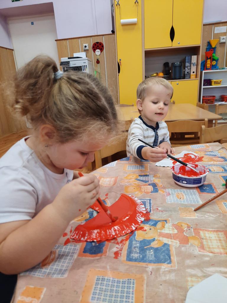 Krásnou, ale jedovatou muchomůrku jsme malovali temperovými barvami, zdobili bílými puntíky a naučili jsme se o ní hezkou písničku s pohybem. Rádi chodíme na procházky a pár hříbků jsme i sami našli v trávě.