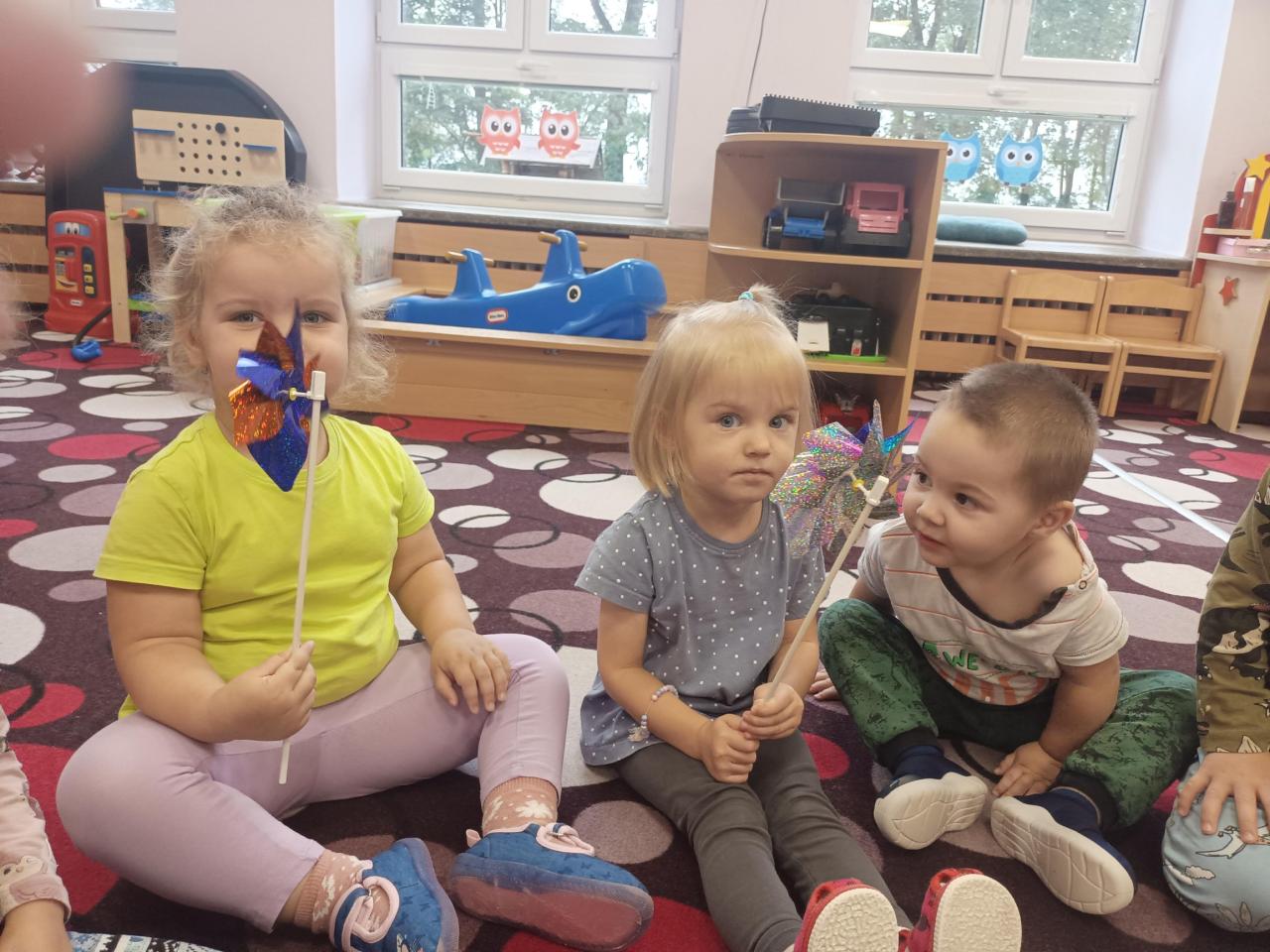 Foukáním do větrníku znázorňovaly vítr, přičemž si děti procvičovaly dýchací svaly a koordinaci dechu.
