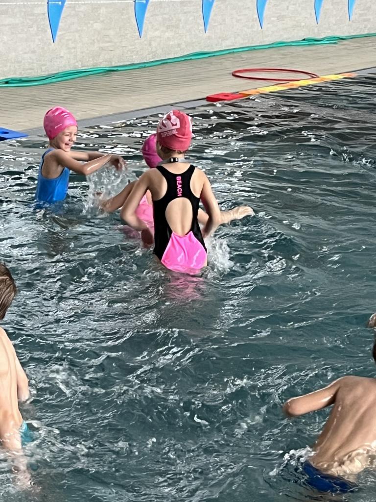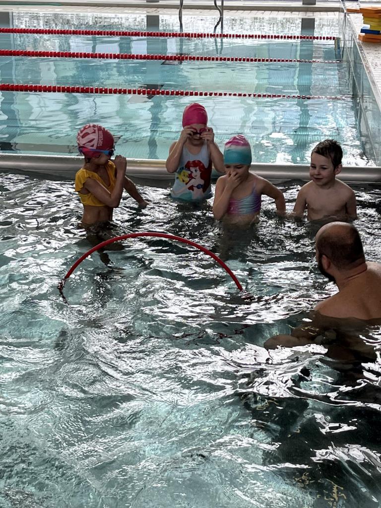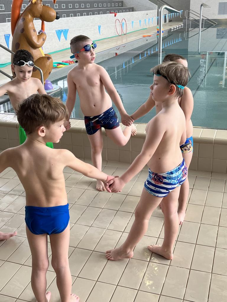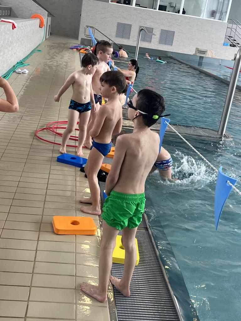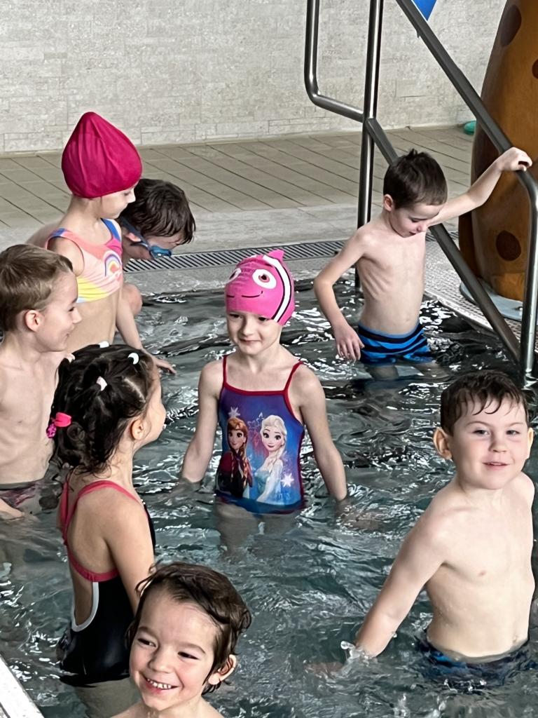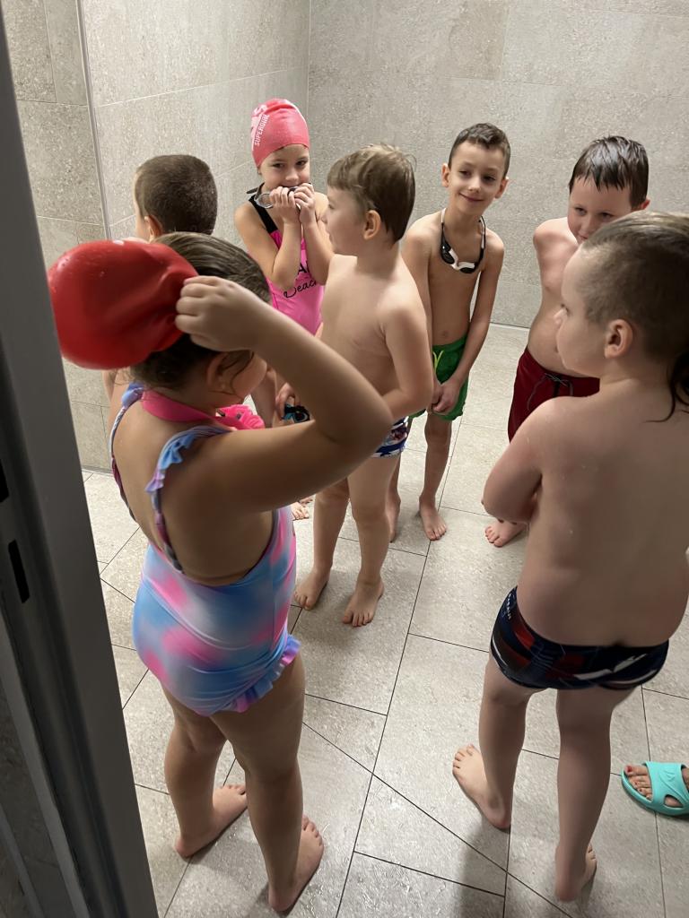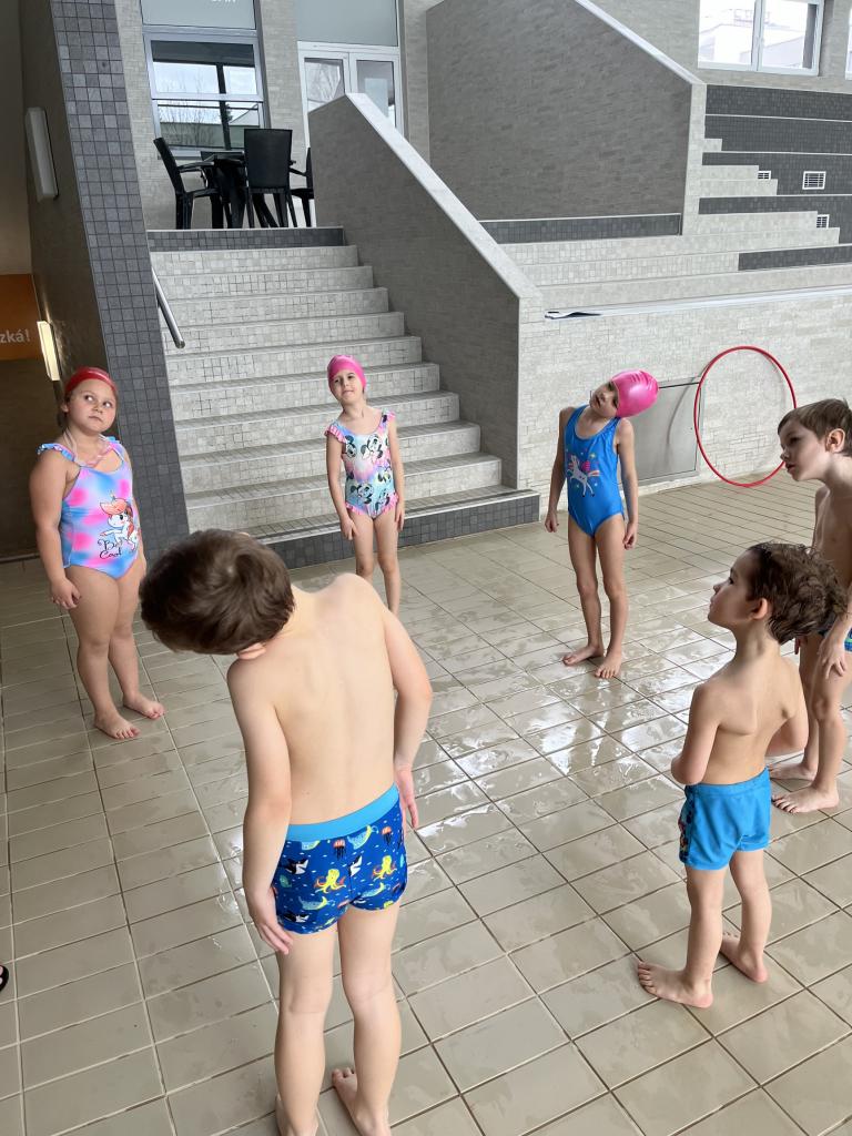 První a druhá lekce byla formou seznamování se s bezpečností při pobytu na bazéně, rozdělení do skupin podle toho, jací jsou kamarádi s vodou, jestli se jí nebojí a nevadí jim se potápět. Děti se na první lekci seznamovaly s vodou, hrály si, stříkaly se, polévaly navzájem. Na druhé lekci již dělaly věci podle toho, ve které byly skupině. Některé se s vodou seznamovaly, foukaly do ní, nosily kelímky na hlavě, v jiných skupinách již splývaly s destičkami, proplouvaly obručemi pod vodou, skákaly do hluboké vody. Na konci každé lekce si děti mohou užít klokana, ze kterého stříká voda a hrát si s vodou podle toho, jak chtějí ony samy.