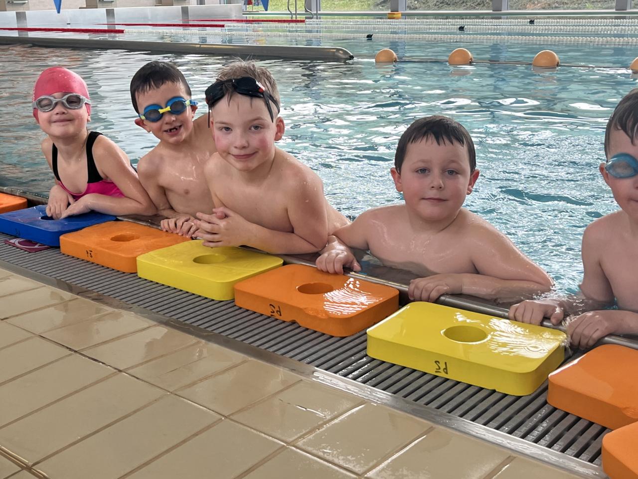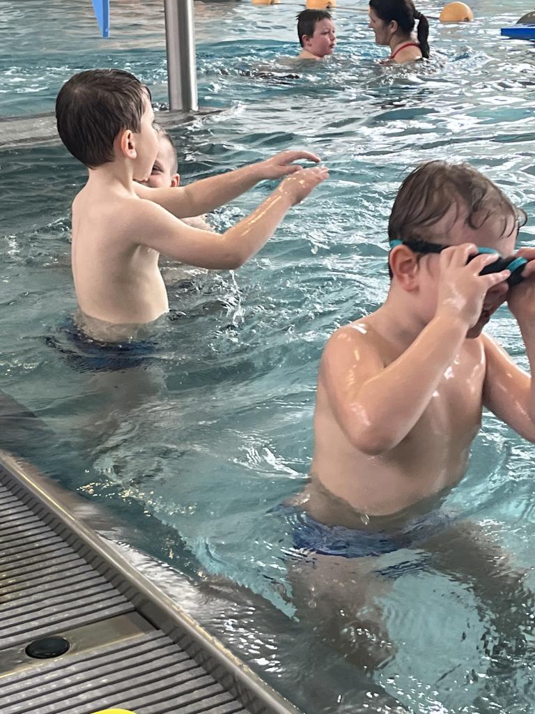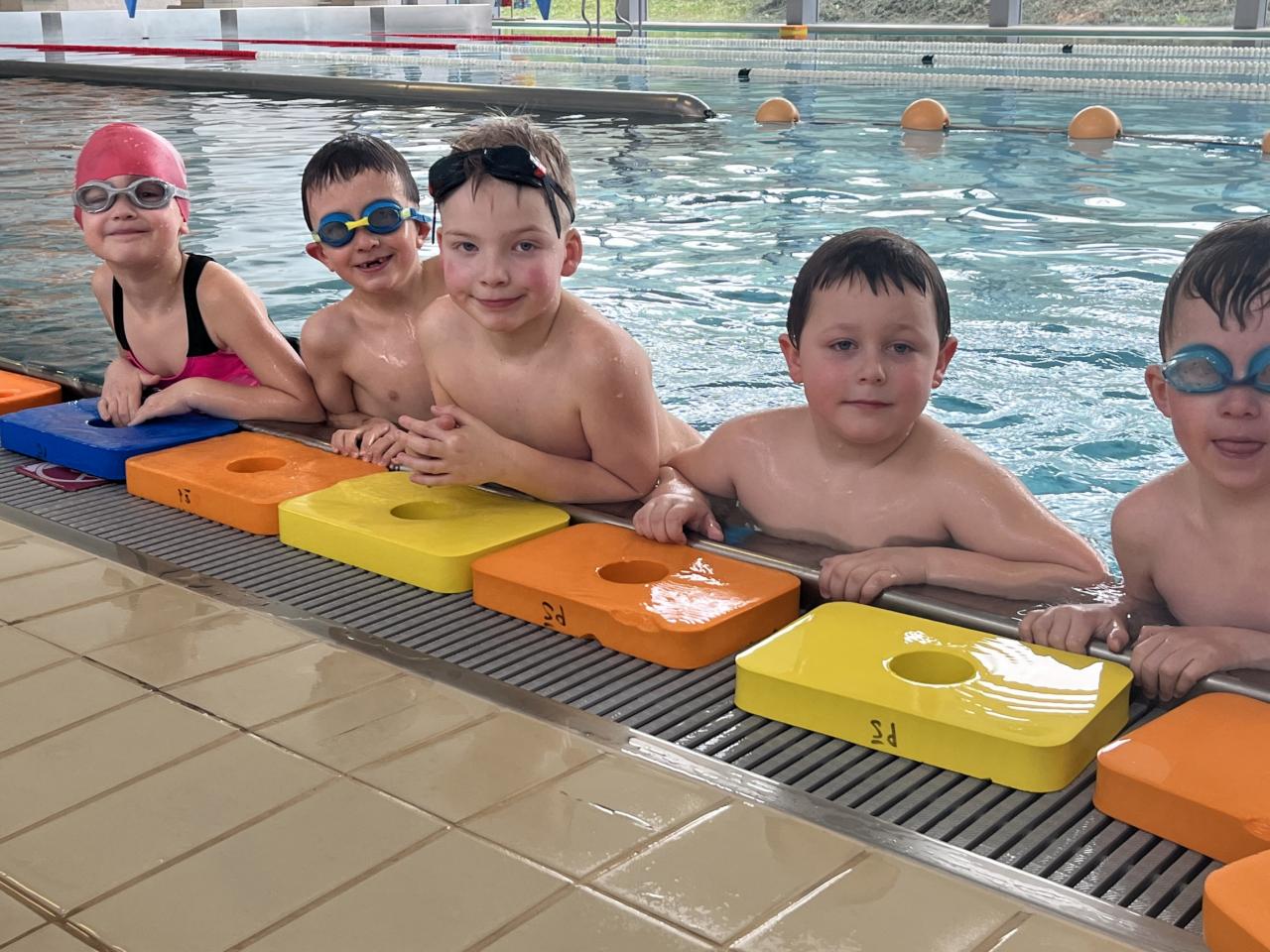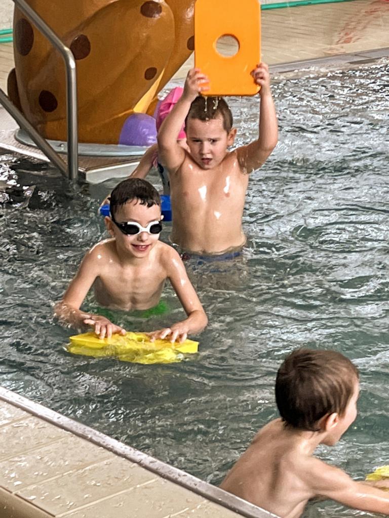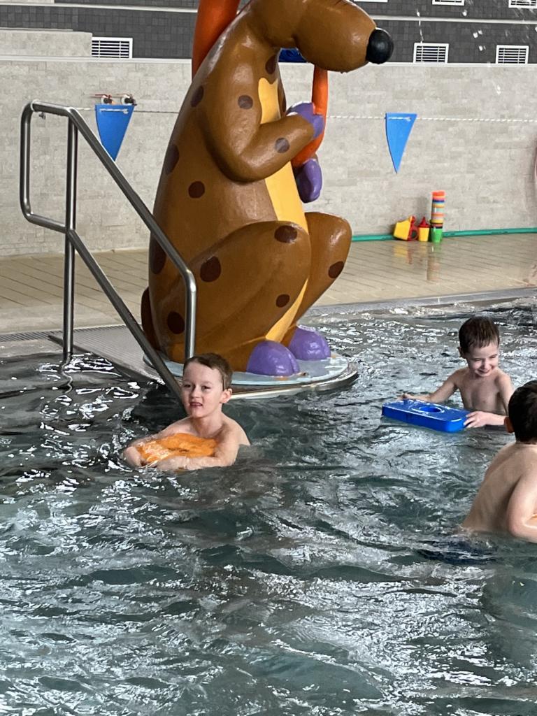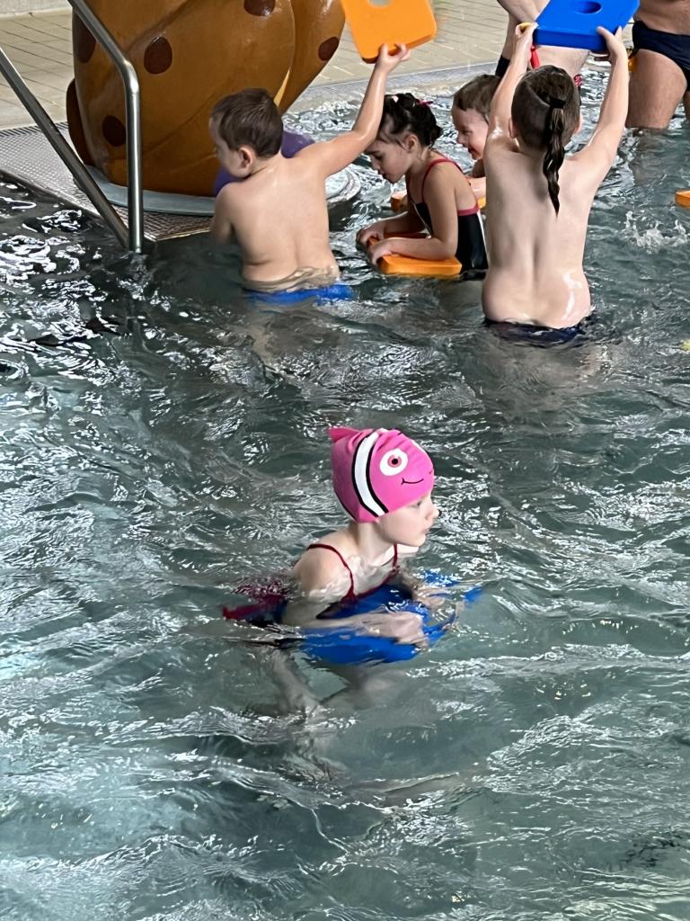 První a druhá lekce byla formou seznamování se s bezpečností při pobytu na bazéně, rozdělení do skupin podle toho, jací jsou kamarádi s vodou, jestli se jí nebojí a nevadí jim se potápět. Děti se na první lekci seznamovaly s vodou, hrály si, stříkaly se, polévaly navzájem. Na druhé lekci již dělaly věci podle toho, ve které byly skupině. Některé se s vodou seznamovaly, foukaly do ní, nosily kelímky na hlavě, v jiných skupinách již splývaly s destičkami, proplouvaly obručemi pod vodou, skákaly do hluboké vody. Na konci každé lekce si děti mohou užít klokana, ze kterého stříká voda a hrát si s vodou podle toho, jak chtějí ony samy.