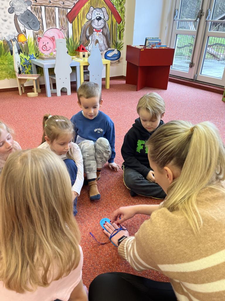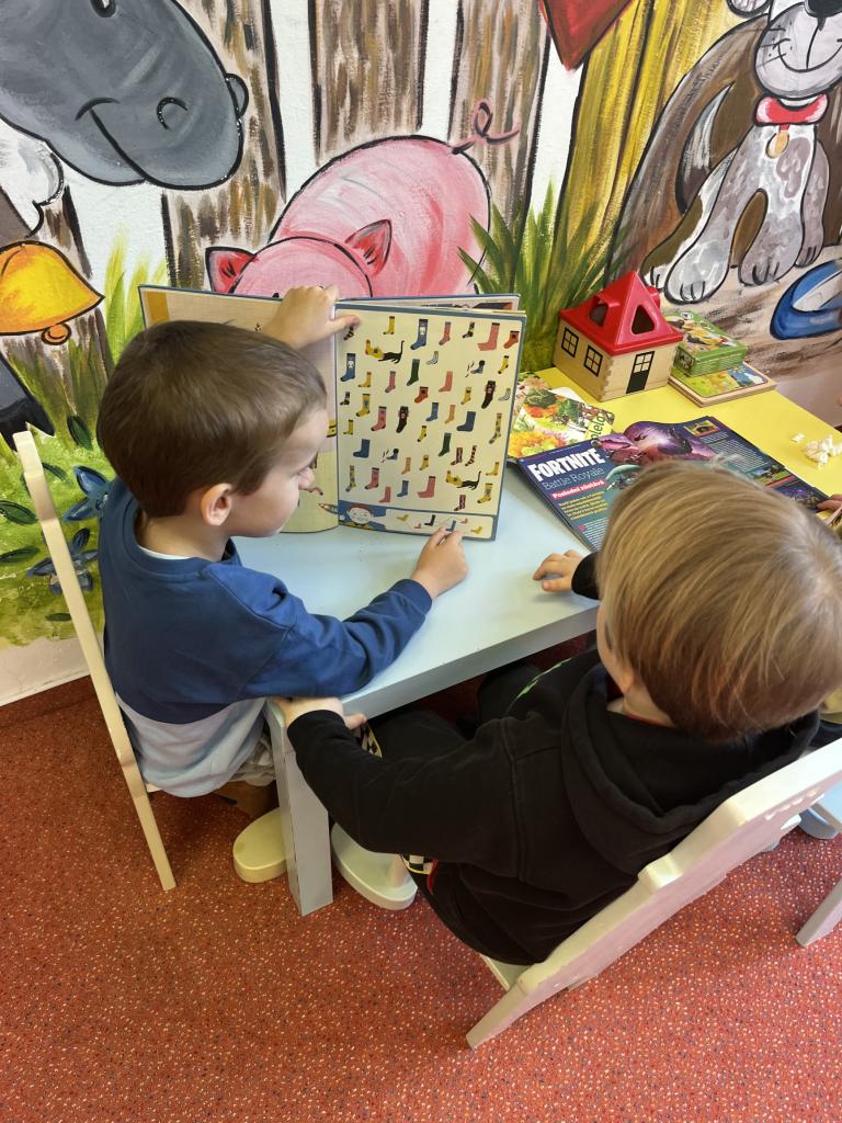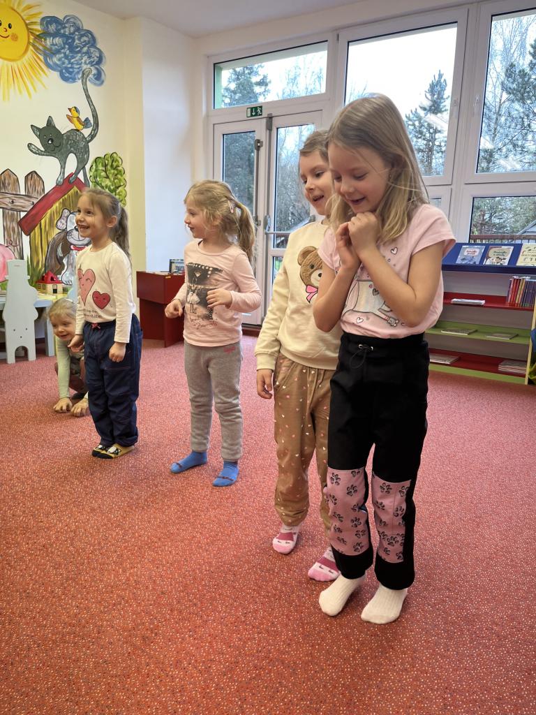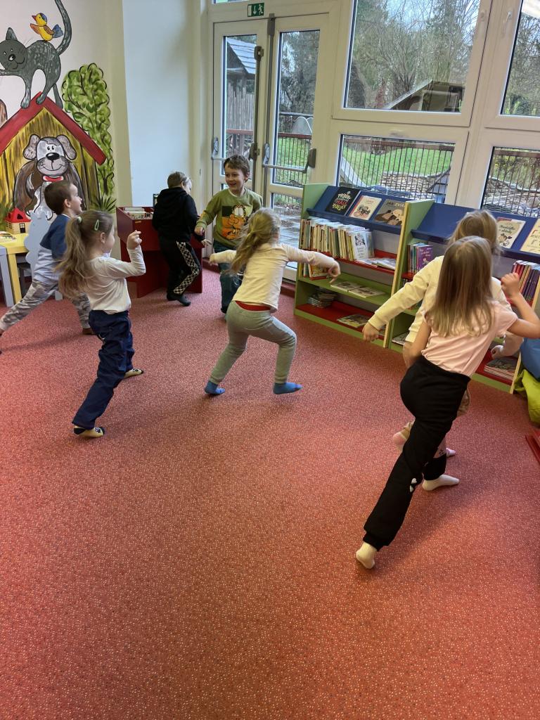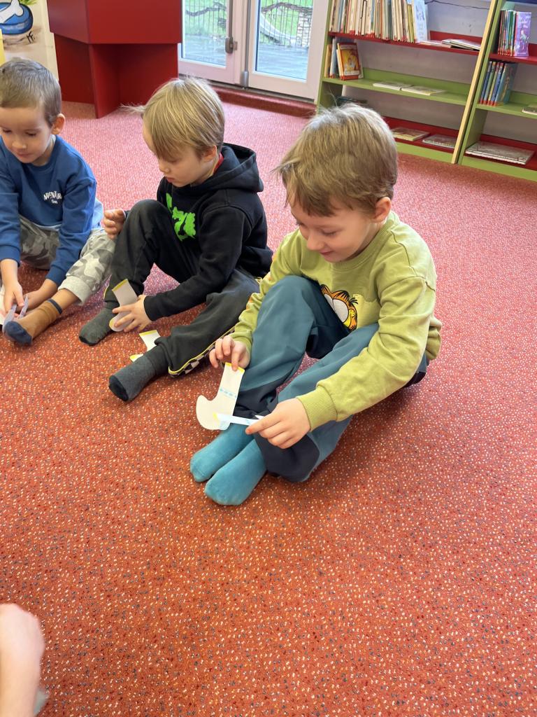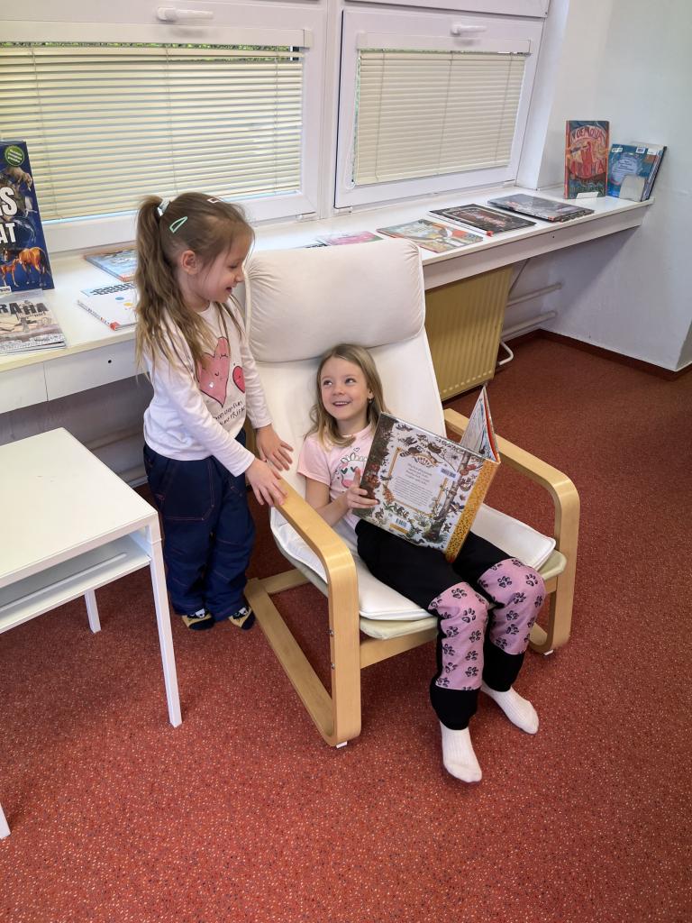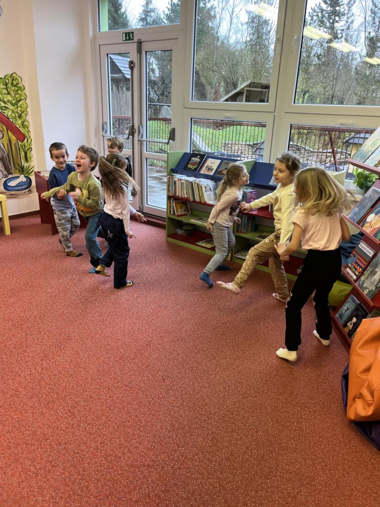 Slečna Markéta provedla děti obrázkovou knížkou, která neměla žádný text, a přitom se s ní dalo krásně pracovat. Na její otázku „Co děláte každý den?“ padaly odpovědi jako hrajeme si, jíme, běháme, spíme, hrajeme na počítači, kreslíme. Poté se děti seznámily s hodinami a snažily se uhodnout čas, které ukazovaly hodiny na obrázcích. Aby se nenudily, zahrály si pohybovou hru s názvem „Honzo, vstávej“. Po ukončení hry hledaly ponožky po prostoru knihovny a tvořily páry. Připomněli si pojmy ráno, dopoledne, poledne, odpoledne, večer a činnosti, které se v daných částech dne většinou dělají. Určovaly názvy ovoce a zeleniny na obrázcích v knize, snažily se zavázat boty, určovaly také názvy dopravních prostředků a různých obchodů jako je obuv, knihkupectví, zahradnictví…