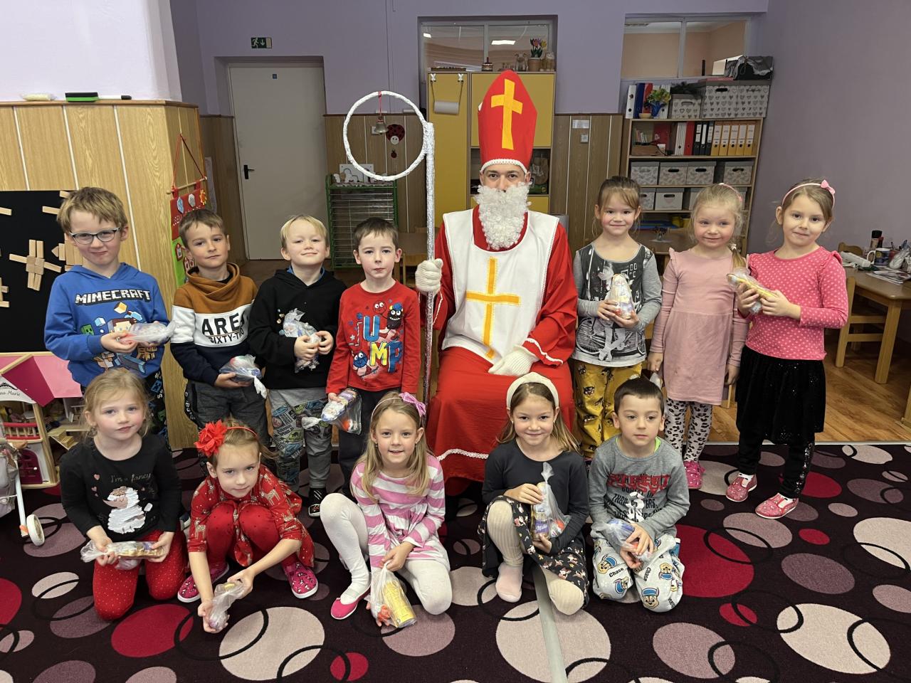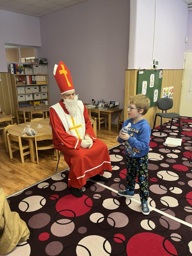 A jelikož máme letos ve školce opět samé hodné děti, přišel Mikuláš zase bez čerta. Toho nechal venku, aby se děti nebály 😊. Samozřejmě nepřišel jen tak s prázdnou, měl plný pytel sladkostí, ale na oplátku chtěl po dětech zazpívat písničky a říct básničky. Protože to krásně uměly nebyl důvod návštěvu dlouho prodlužovat a balíčky se sladkostmi mohly být předány 😊