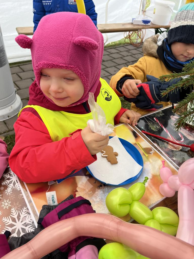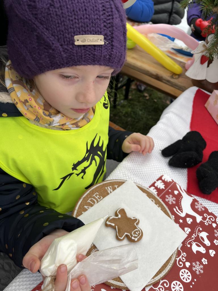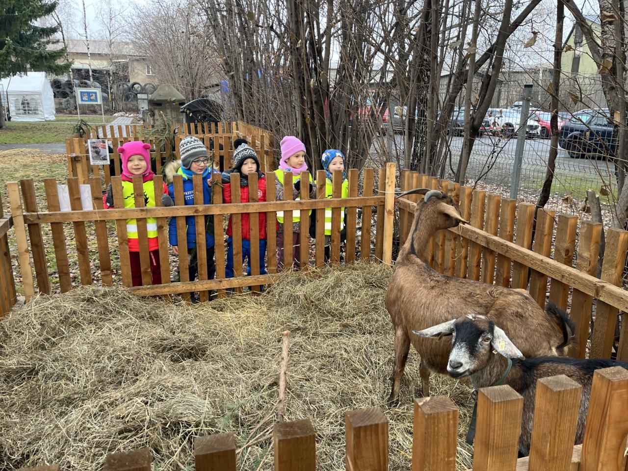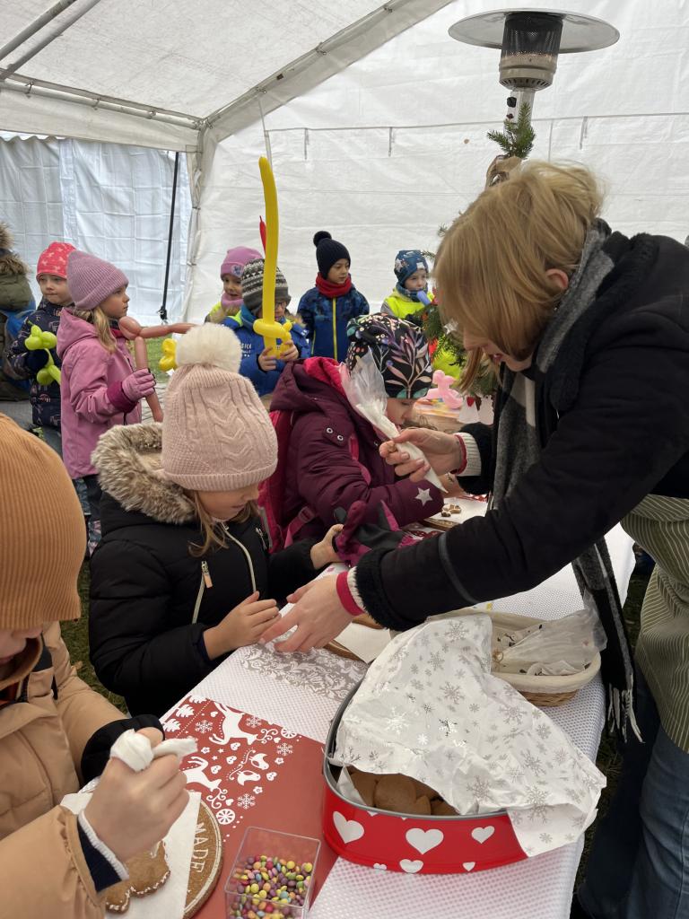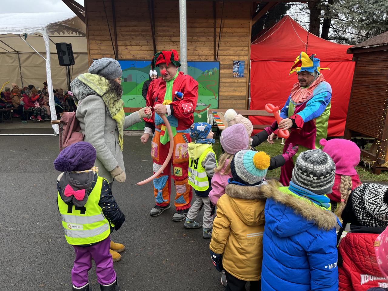 Hned po příchodu na nás čekala zvířátka. Největší oblibě se těšil velbloud, kterého jen tak někde nevidíme. Potkali jsme i Klauny z Balónkova a ti každému děťátku vyrobili z balónku zvířátko, předmět podle jejich přání. Nevíme, jestli to bylo zimou nebo balónky, ale nikomu to nevydrželo ani cestu do školky ☹ a z každého balónku vznikla každému pouze dlouhá „žížala“, jak to nazvaly děti 😊. Měli jsme možnost podívat se na historická řemesla, košíkářství, kovářství, drátenictví, řezbářství, zdobení baněk a perníčků, které si děti vyzkoušely na vlastní kůži a za odměnu si mohly své dílo sníst 😊.