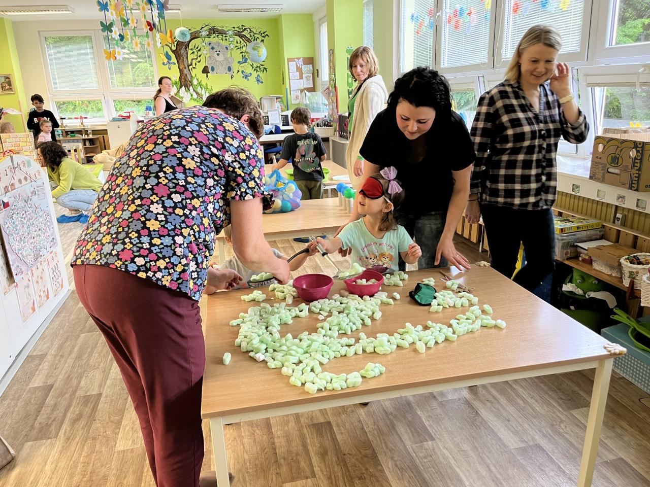 Ve středu odpoledne se přišli rodiče z MŠ Sosnové podívat na jejich děti. Vzhledem ke špatnému počasí, musel být program přesunut dovnitř MŠ. To nám ale nezkazilo náladu a vše se vydařilo na jedničku. Děti na začátku předvedly program, který je pečlivě naučily paní učitelky a poté se rodiče s dětmi rozutekli do tříd, kde pro ně byly připraveny zábavné úkoly. Děti si například vyzkoušely oholit tatínkovi vousy, krmit maminku přesnídávkou se zavázanýma očima, lovit víčka ve vodě, byl pro ně byl připraven i fotokoutek a spousta dalších stanovišť. Myslíme, že si všichni užili krásné odpoledne! :-)