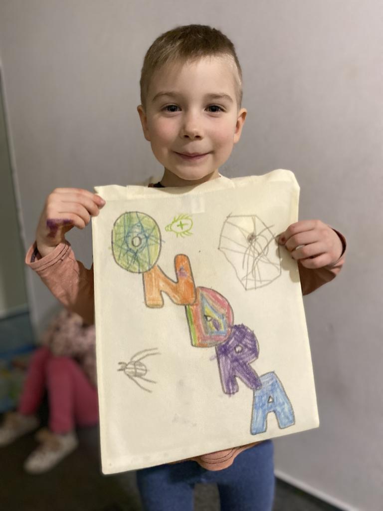 Ještě předtím, než jsme si četli pohlednice, tak si děti ozdobily své plátěné tašky, do kterých si potom daly všechny své dárečky. A dneska se nerozdávaly jen dárečky ale i diplomy za všechno možné, co už děti zvládly! :-) S vědomím toho, že už se nám pobyt krátí, si šly děti lehnout do postýlek a spinkat.
