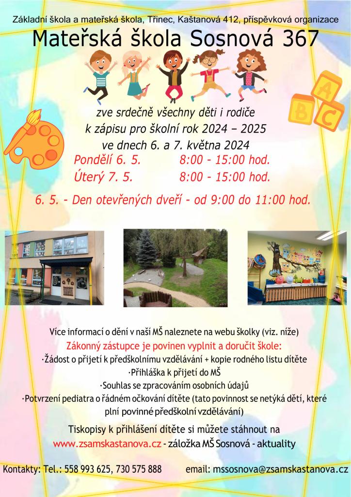 Důležité tiskopisy potřebné k zápisu do mateřské školy ke stáhnutí níže: