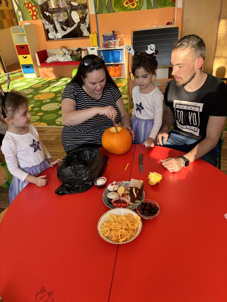 Čtvrteční odpoledne strávily berušky společně s rodiči dlabáním dýni, které patří k podzimu, ale i k halloweenské výzdobě. Dále měly děti přípravené úkoly, které byly rozmístěné po třídě a společně s rodiči je plnily. Také si děti mohly pochutnat na dobrotách, které si pro ně připravili jejich rodiče.