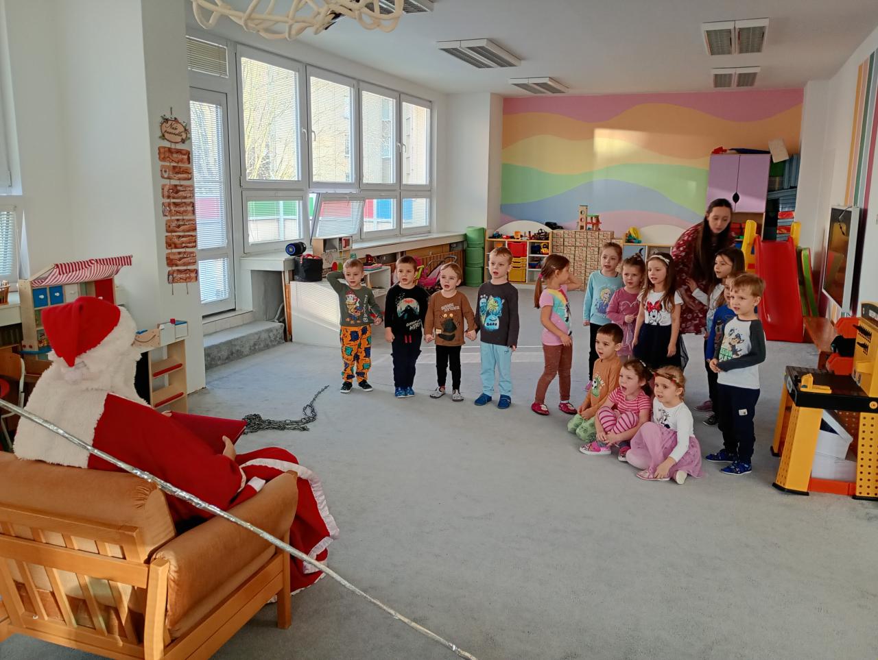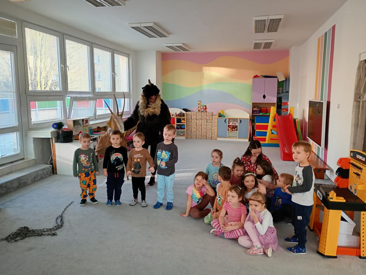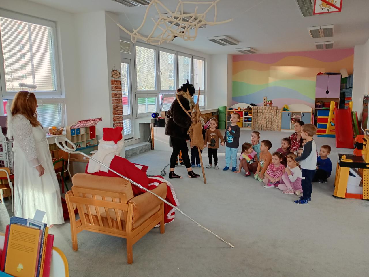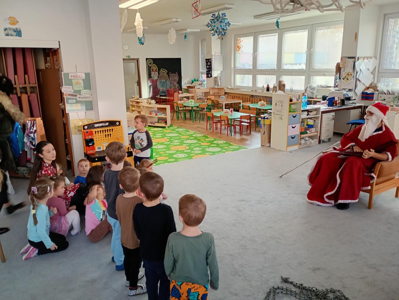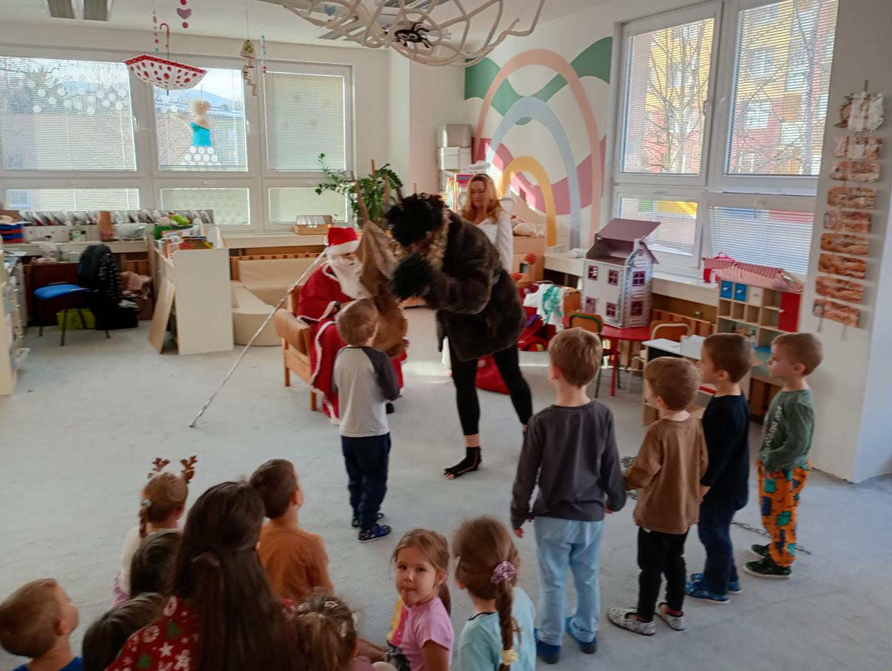 Dnes nás ve školce navštívil svatý Mikuláš se svým věrným doprovodem – andělem a čertem. Děti jim společně zazpívaly a pověděly básničky. Mikuláš všechny pochválil za jejich snahu a anděl rozdával úsměvy i drobné dárečky. Čert jen lehce zařinčel řetězem, ale nakonec měl také dobrou