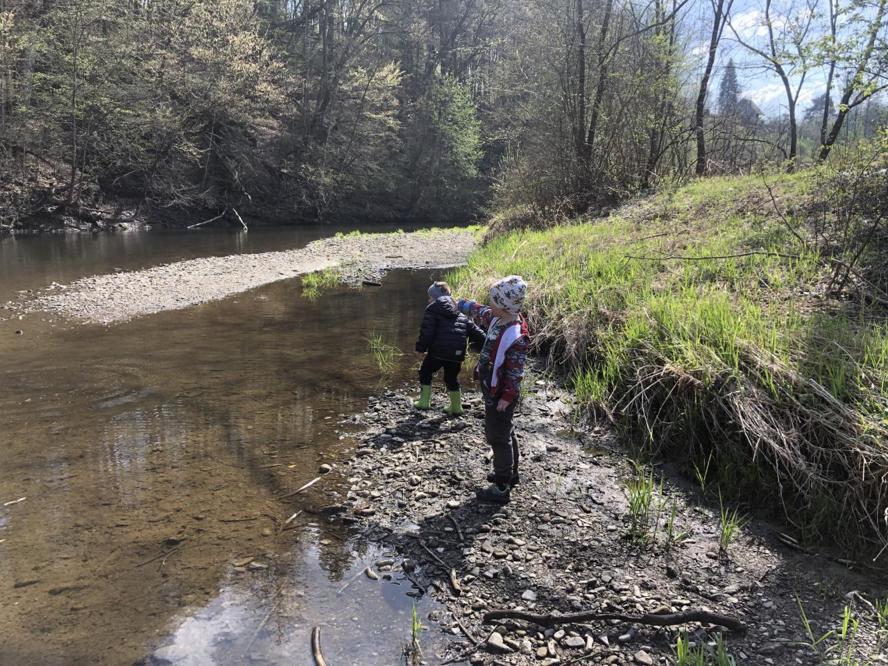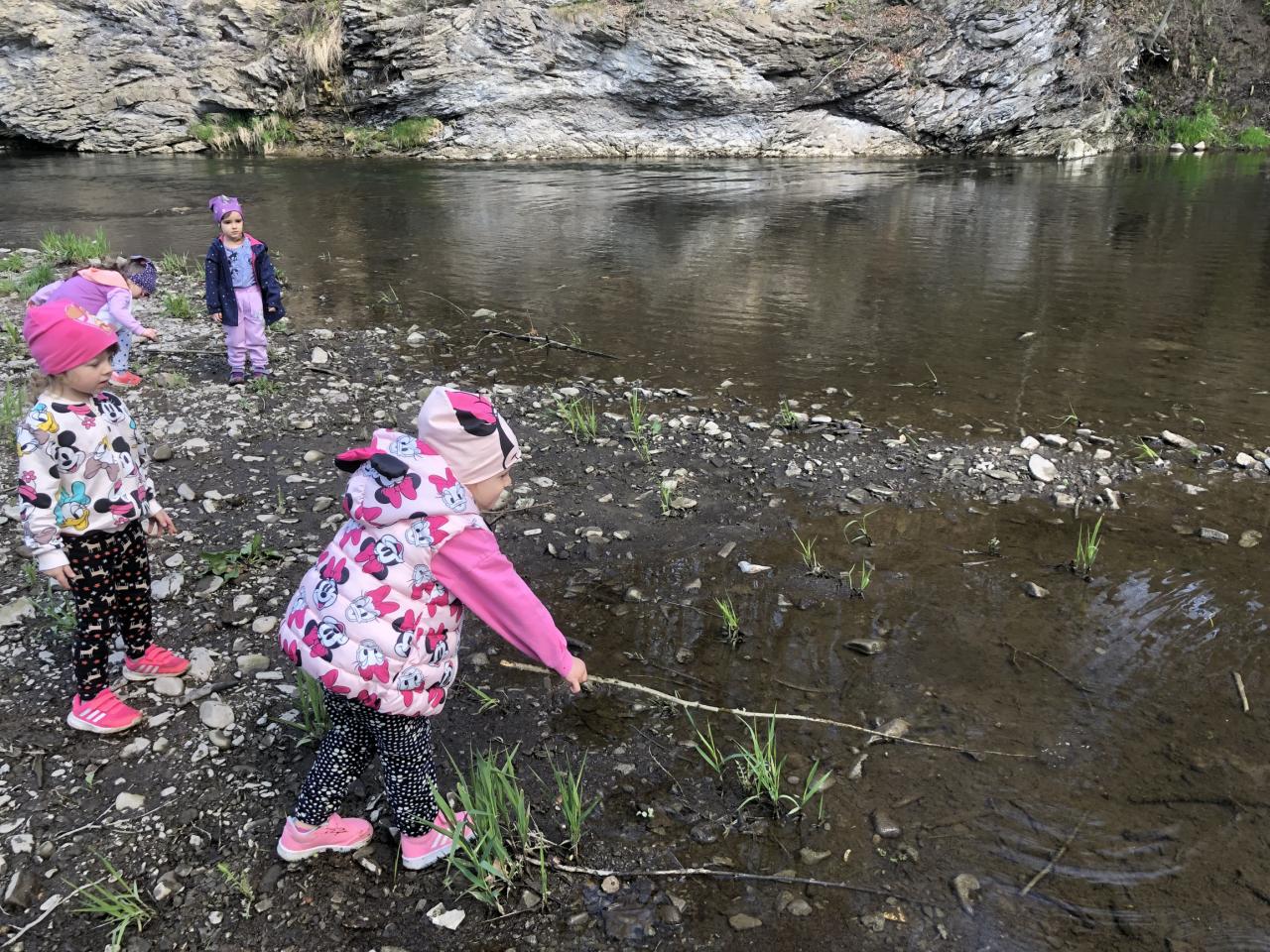 U řeky se dětem líbilo,házely do vody kamínky a někdo i "rybářil".Sluníčko svítilo a všem se nám tam líbilo ????