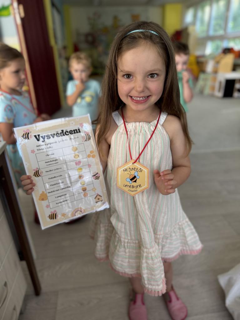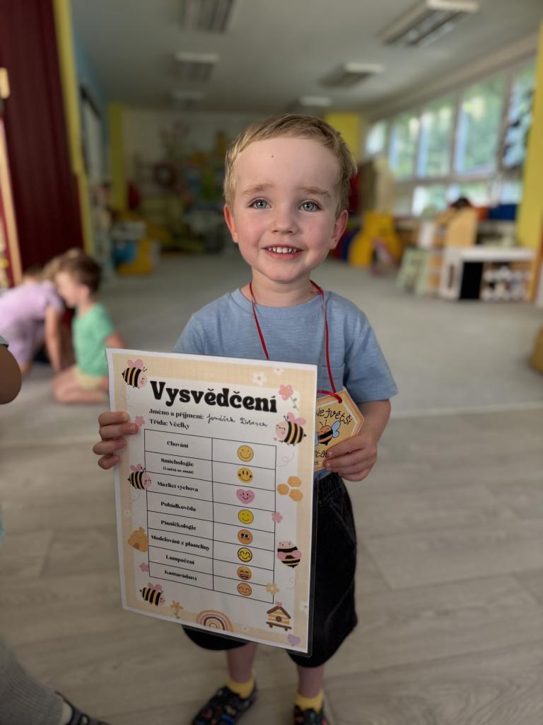 Na konci školního roku jsme si rozdali vysvědčení, medaile a výkresy.