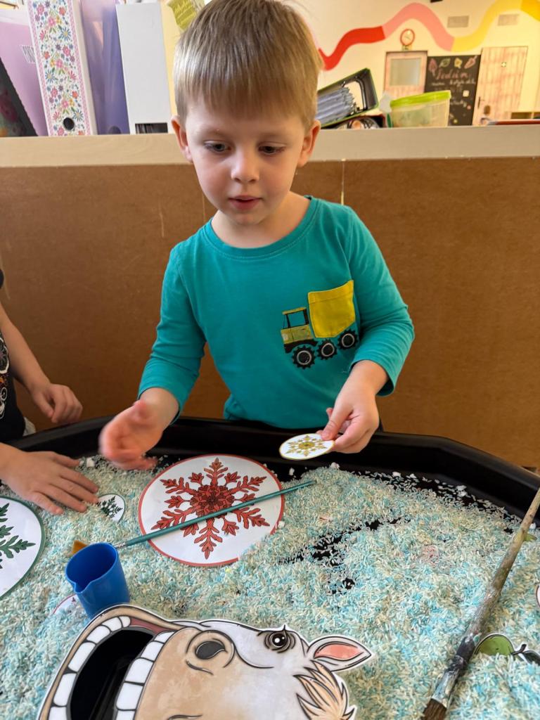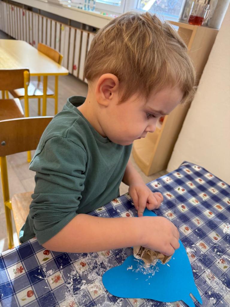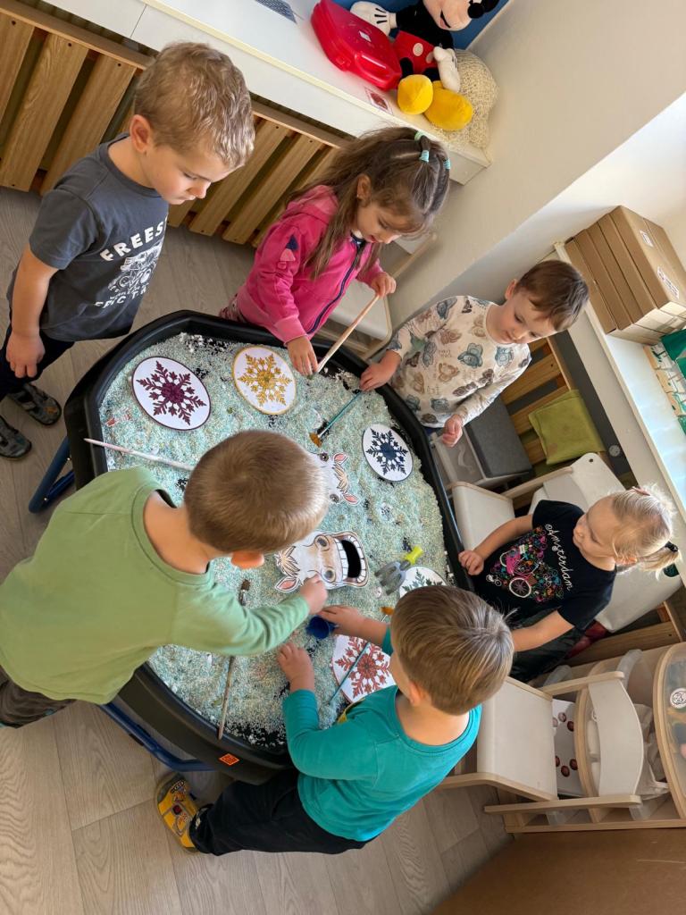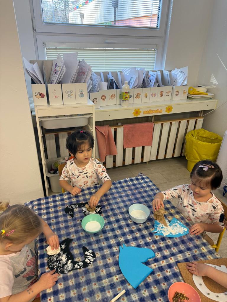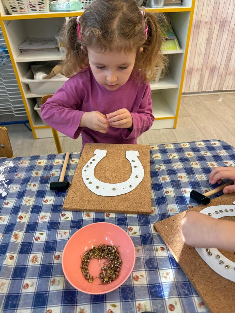 Povídali jsme si o legedně, tvořili svatomartinskou husu a bílého koníka, trénovali písničky a básničky, zatloukali hřebíky do podkovy, krmili "koníka" ovocem, hledali sněhové vločky.
