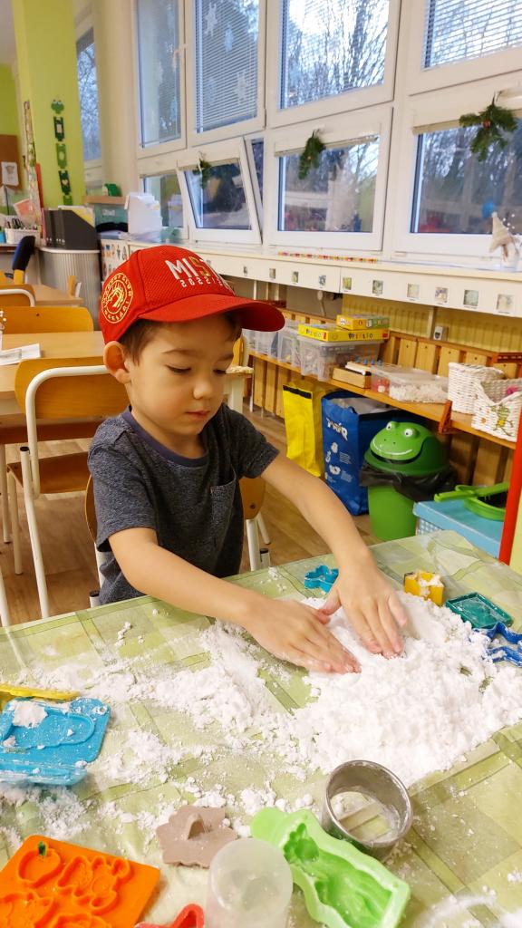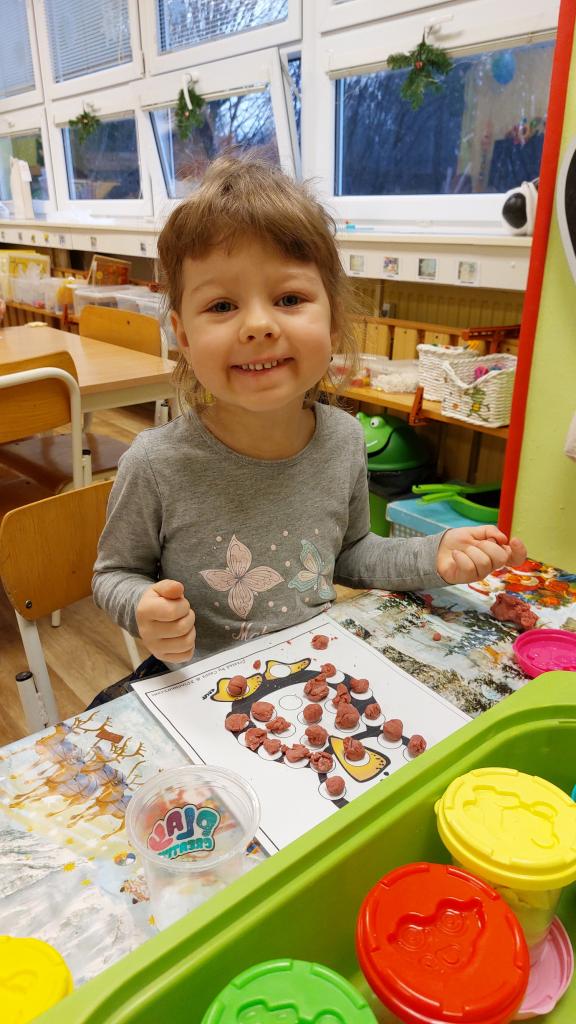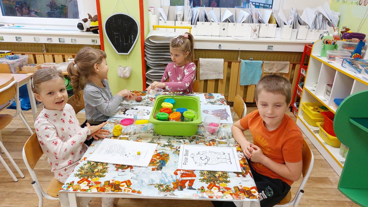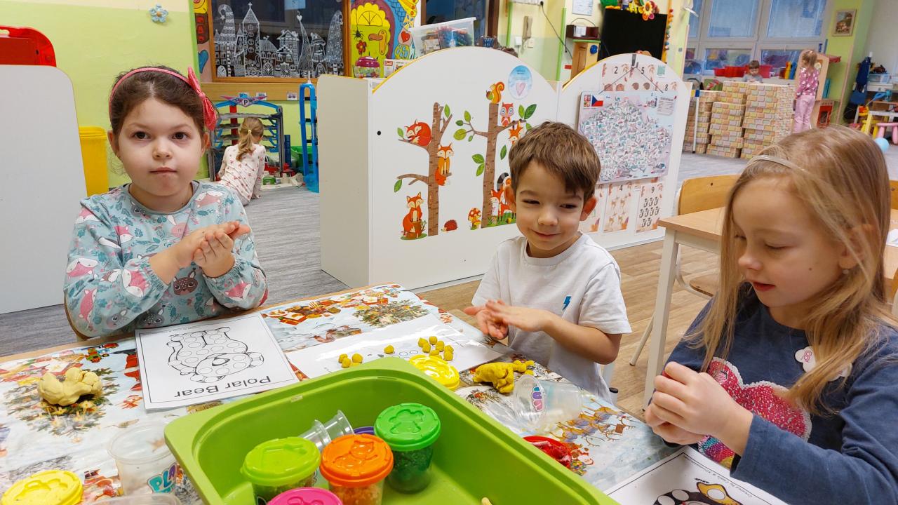 V pondělí jsme se seznamovali se zimními sporty, vysvětlili jsme si, kdo je paralympionik, jaké vlastnosti by měli mít sportovci, pojmenovávali jsme si sportovní náčiní a také jsme si některé sporty vyzkoušeli. Úterý bylo ve znamení karnevalu. Ve středu jsme se podívali na daleký sever i jih. Vysvětlili jsme si, kde leží Arktida a Antarktida, a také jsme se tam pomocí power pointové prezentace podívali. Zjistili jsme, že se nikdy nemůže potkat tučňák s ledním medvědem. Prohlédli jsme si zástupce těchto kontinentů, seznámili jsme se s obyvateli severu a v návaznosti na naše povídání jsme se začetli ve čtvrtek do příběhu O slepém chlapci a potáplici. Děti se dozvěděly, jak vypadá potáplice, a že ji dokonce můžete sem tam vidět i u nás v České republice. Probrali jsme také všechny vodní tvory, které můžeme zahlédnout u nás na Olši, abychom si jich mohli všimnout, když kolem řeky půjdeme na procházku. Vše jsme doplnili o spoustu her k tématu ať už pohybových nebo didaktických. Zkoušeli jsme vyřešit sudoku, modelovali jsme polární zvířata, vyzkoušeli jsme chůzi tučňáků, foukali jsme vatové kuličky postavenou dráhou, procvičili jsme náš jazýček na logopedických básničkách. Tak se na vše pojďte podívat.