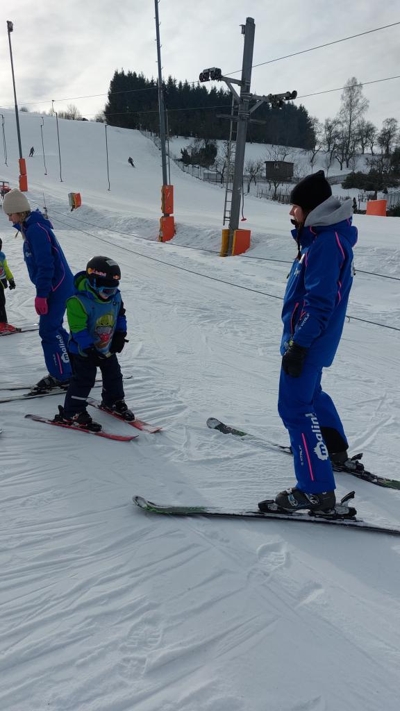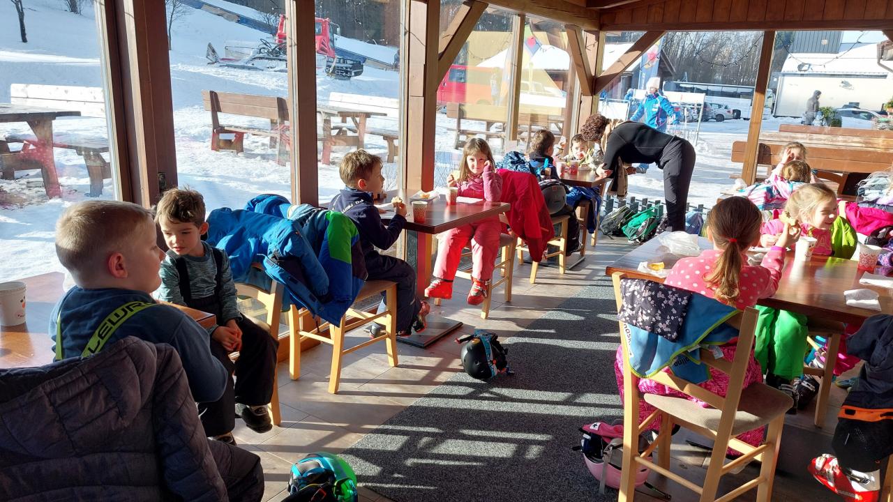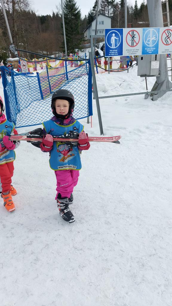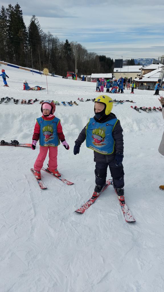 V 7:30 jsme nasedli do autobusu a fičeli jsme směr Bukovec. Cestou jsme se ještě stavili pro děti z MŠ Koperníkové a jelo se. Počasí nám dnes přálo, i když v Třinci foukalo, tam bylo bezvětří, a i sluníčko nám vylezlo. Na kopci byl dostatek sněhu, takže jsme mohli hned po vyfasování lyží začít trénovat. Nejdříve jsme se na to pěkně v kroužku rozcvičili, pak jsme nasadili jednu lyži, vyzkoušeli jsme si se na ní odrážet, pak i druhou, zkoušeli jsme šlapat do kopce, padat a zvedat se a pak to přišlo. Rozjeli jsme se z pidi kopečku a zkoušeli jsme se zastavit. Některým to už šlo, tak si vyzkoušeli jezdit na laně s instruktorem. Někteří jsou již mazáci a zvládali lano samostatně. Tak se zase budeme těšit na zítřek opět v 7:30. Pojďte se podívat, jak nám to šlo.