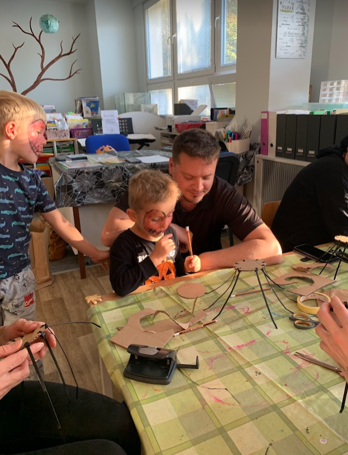 S pomocí rodičů si děti vyrobily pavouka, který "chodil" pomocí foukání, nebo ducha z kelímku a gumové rukavice. Měly také možnost s rodiči plnit různé úkoly, jako například míchání lektvarů, uspořádání obrázků podle čteného textu, kolíčkování a prosvětlování obrázků. Navíc mohly rodičům ukázat, jak funguje a co umí včelka Bee.