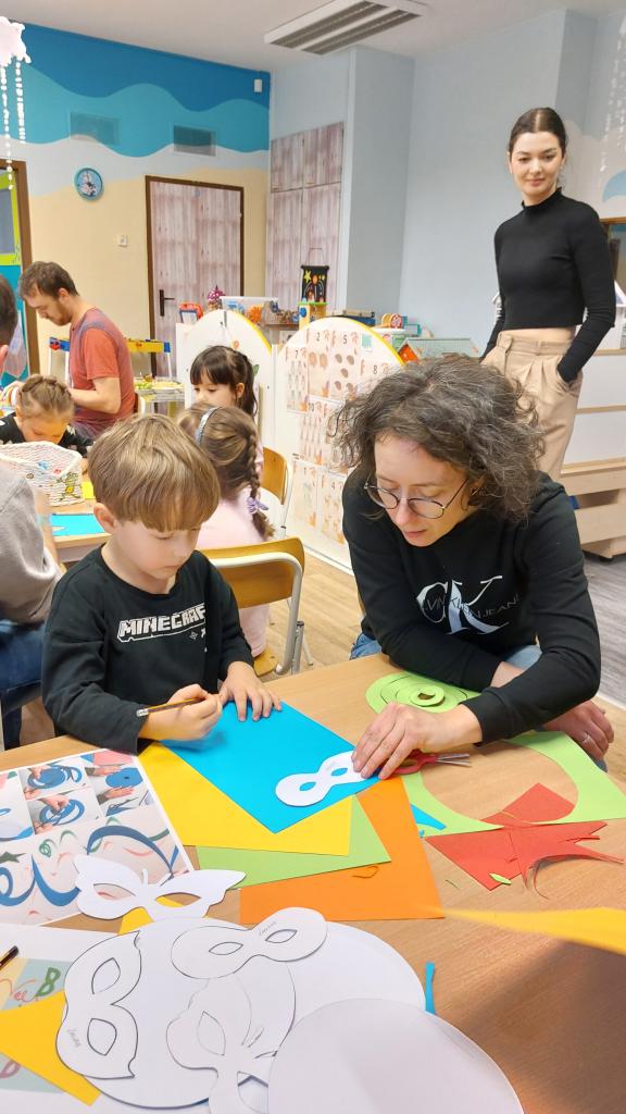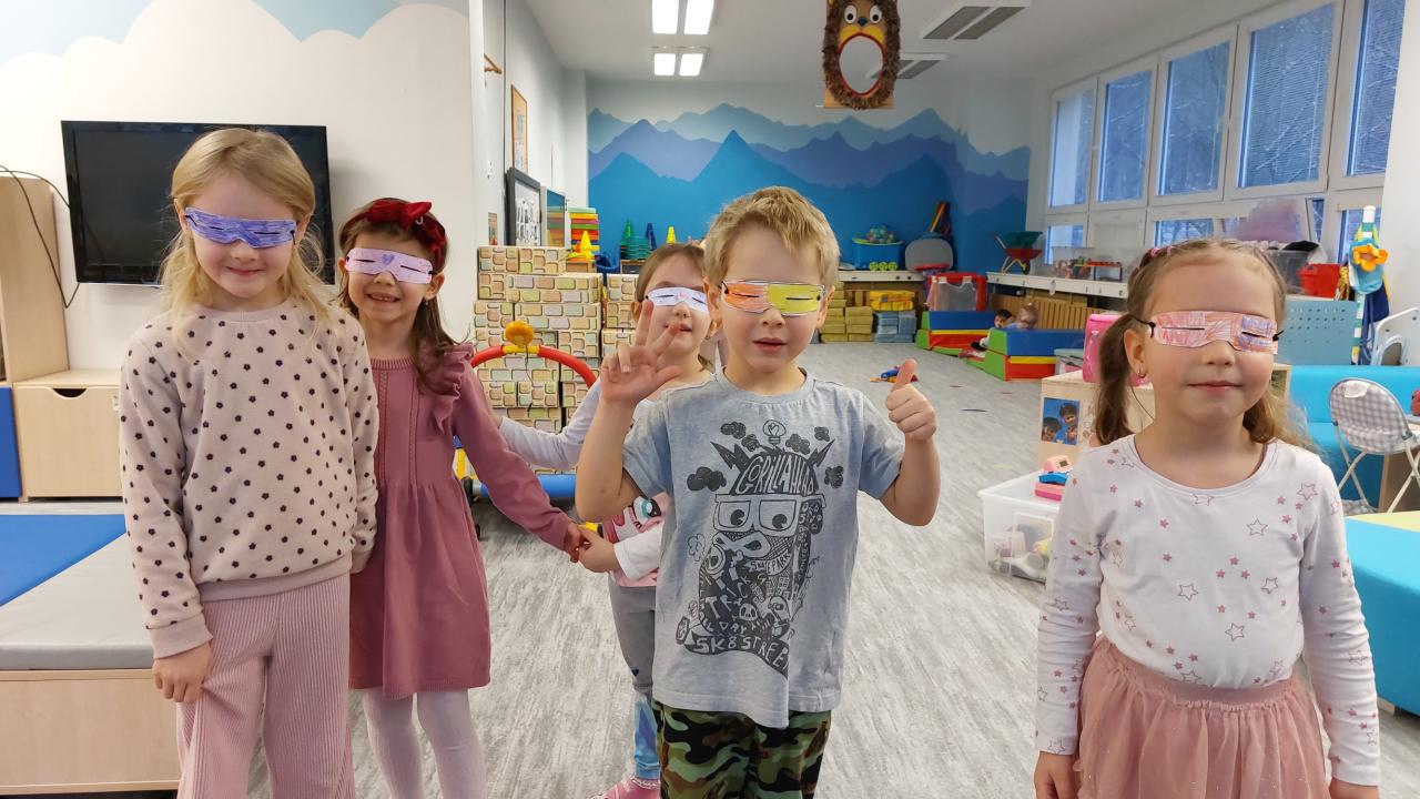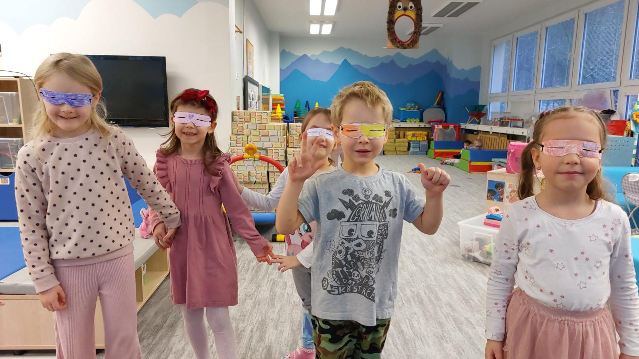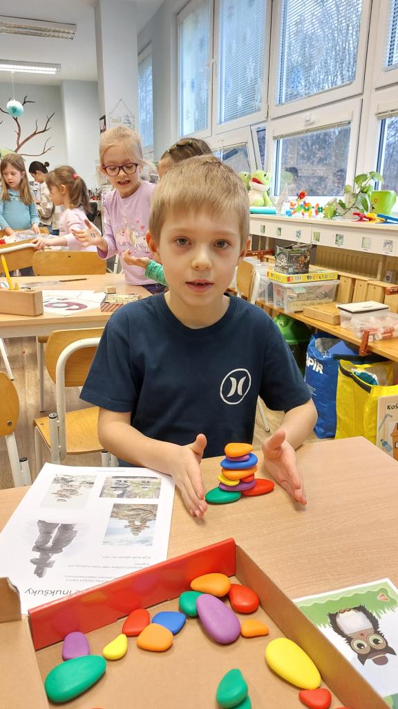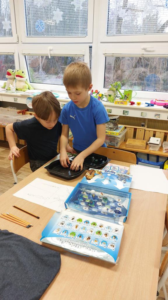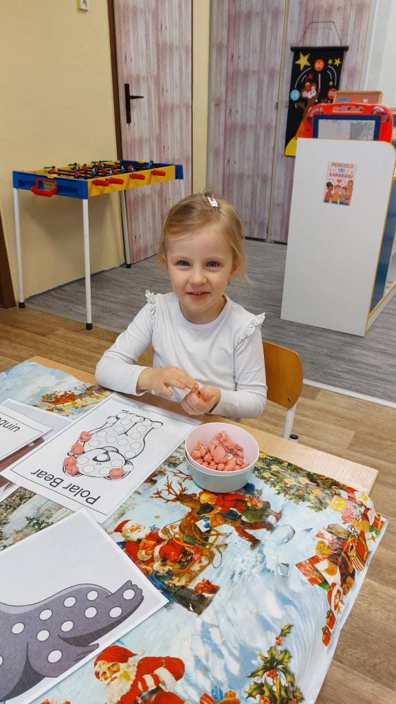 Povídali jsme si o Antarktidě a Arktidě, rozdělili jsme si zvířata na ty, co žijí na severu a na ty co žijí na jižním pólu. Děti se dozvěděly, jak zvířata cestují, jakou vzdálenost urazí, kudy se pohybují, kolik let se dožívají, kdo je mezi nimi rekordmanem. Nakoukli jsme i do tajů spánku zvířat. Rozvíjeli jsme předčtenářskou gramotnost s knihou Jak zvířata spí. Navštívili jsme i Eskymáky, dozvěděli jsme se, jaké vynálezy máme díky nim. Děti si dle zájmu vyráběly amulety, brýle, modelovaly severská zvířata, rozvíjely jemnou motoriku s pomocí tučňáka na magnetu, který jim pomáhal vykreslovat písmena, stavěly inukšuky, dokreslovaly druhou polovinu Eskymáka. Hledali jsme rýmy, stavěli věže vloček podle zadaného počtu, stavěli jsme iglú ze všeho možného, hráli si na Eskymáky, učili se cvrnkat do kuliček a zaznamenávali jsme skóre. Na závěr jsme si dali kvíz ledního medvěda, kde jsme zjišťovali, co si kdo zapamatoval. Nechybělo cvičení, řádění venku a také jsme s některými rodiči strávili příjemné odpoledne na karnevalových dílničkách a moc jim tímto děkujeme za vytvořenou výzdobu.