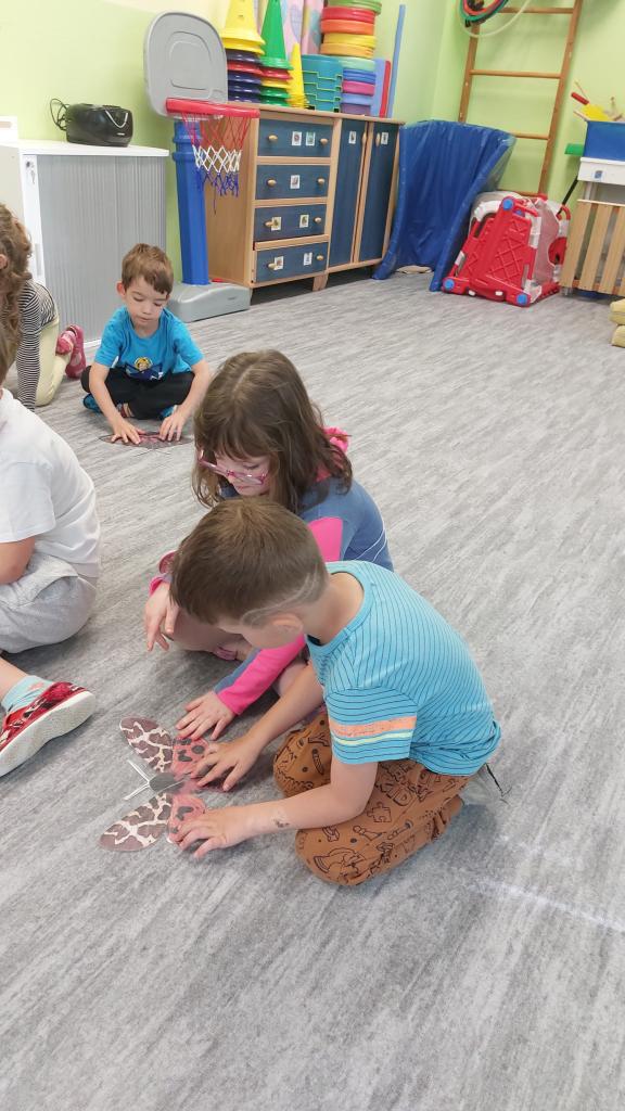 I když v úterý bylo plavání a středa byl státní svátek, stihli jsme si s dětmi povykládat o tom, co se děje na louce. Prohlédli jsme si luční květiny, objevovali hmyz jak venku, tak na obrázcích, a také si vše procvičili na naší nové sovičce. Sovička je projektor, který jsme letos dětem zakoupily za nemalé peníze. Děti si na něm zábavnou formou procvičují kreslení, počítání, různé hry, zrakovou orientaci a mnoho dalšího. Tentokrát jsme sovičku využili na kreslení hmyzu, děti používají speciální pera ke kreslení i pohybu po podložce, a také řadily číslice vzestupně nebo sestupně či rozlišovaly, který hmyz se ve skupině liší detailem, což bylo hodně obtížné, ale měly trpělivost, a nakonec vetřelce objevily. Hodně jsme si povídali o motýlech, nočních i denních, děti si zahrály hru na motýly a strakapouda, která děti hodně bavila, protože si mohly vyzkoušet papírový zobák, a to byl vrchol nadšení. Venku jsme vypleli záhonky, vyčistili ježkovi domeček a moc děkujeme Kájince Witaskové, že poprosila tatínka, a ten nám okamžitě opravil domeček. Dokonce mu i natřel vstupní chodbičku. Ještě jednou moc děkujeme za ochotu a rychlost. No a samozřejmě jsme tento týden přivítali potencionální nové kamarády, kteří přišli na zápis a ukázali jsme jim, jak to chodí v naší školičce. Od příštího týdne nás už čeká spousta akcí, které vám samozřejmě budeme fotit. Ještě přikládáme po delší době pár fotek z plavání a do toho poctivě nacvičujeme na Den rodiny a na radovánky. Ale to si necháme jako překvapení.