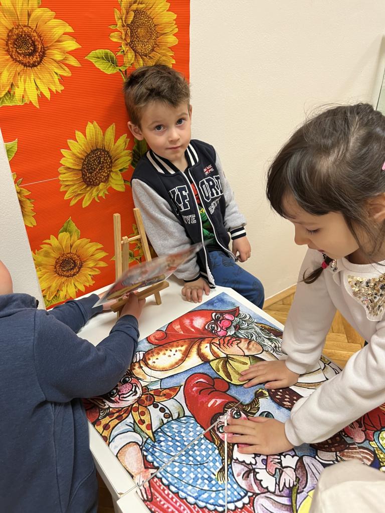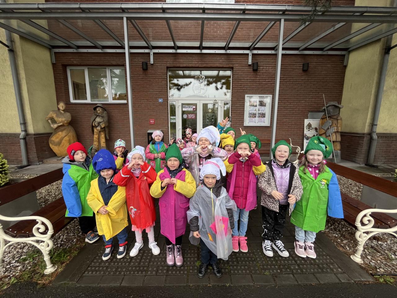 No a ve středu jsme se dočkali slíbeného muzea. Dozvěděli jsme se něco o skřítcích, poslechli si proč mají tak zajímavá jména a děti si nazdobily čepice, se kterýma jsme šli zpátky do školky.