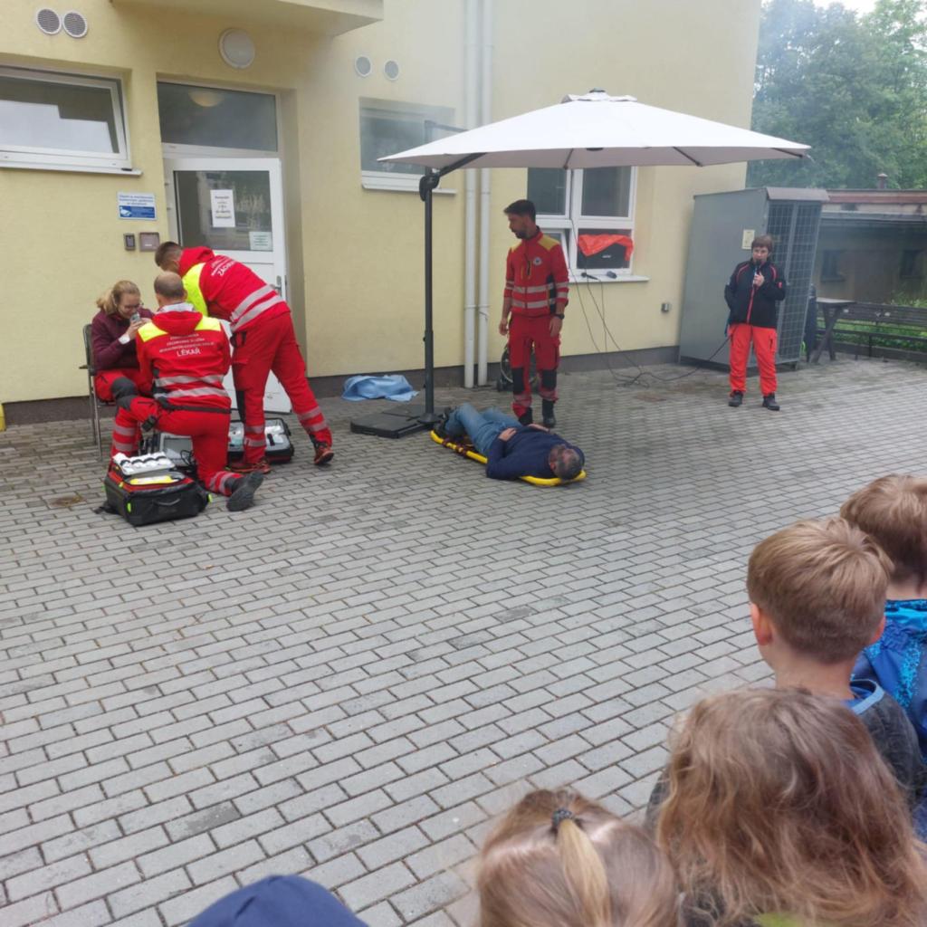 Ve čtvrtek 15. 5. jsme se již tradičně zúčastnili "Dne záchranné služby" v Nemocnici Sosna. Tentokrát nám záchranáři předvedli ukázku záchrany člověka z hořícího objektu. Mohli jsme také nakouknout do vozidla záchranné služby a zkusit si masáž srdce. Těšíme se na příště.