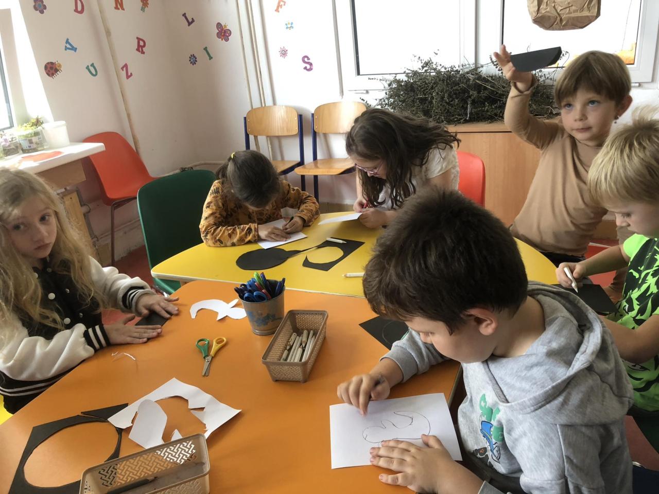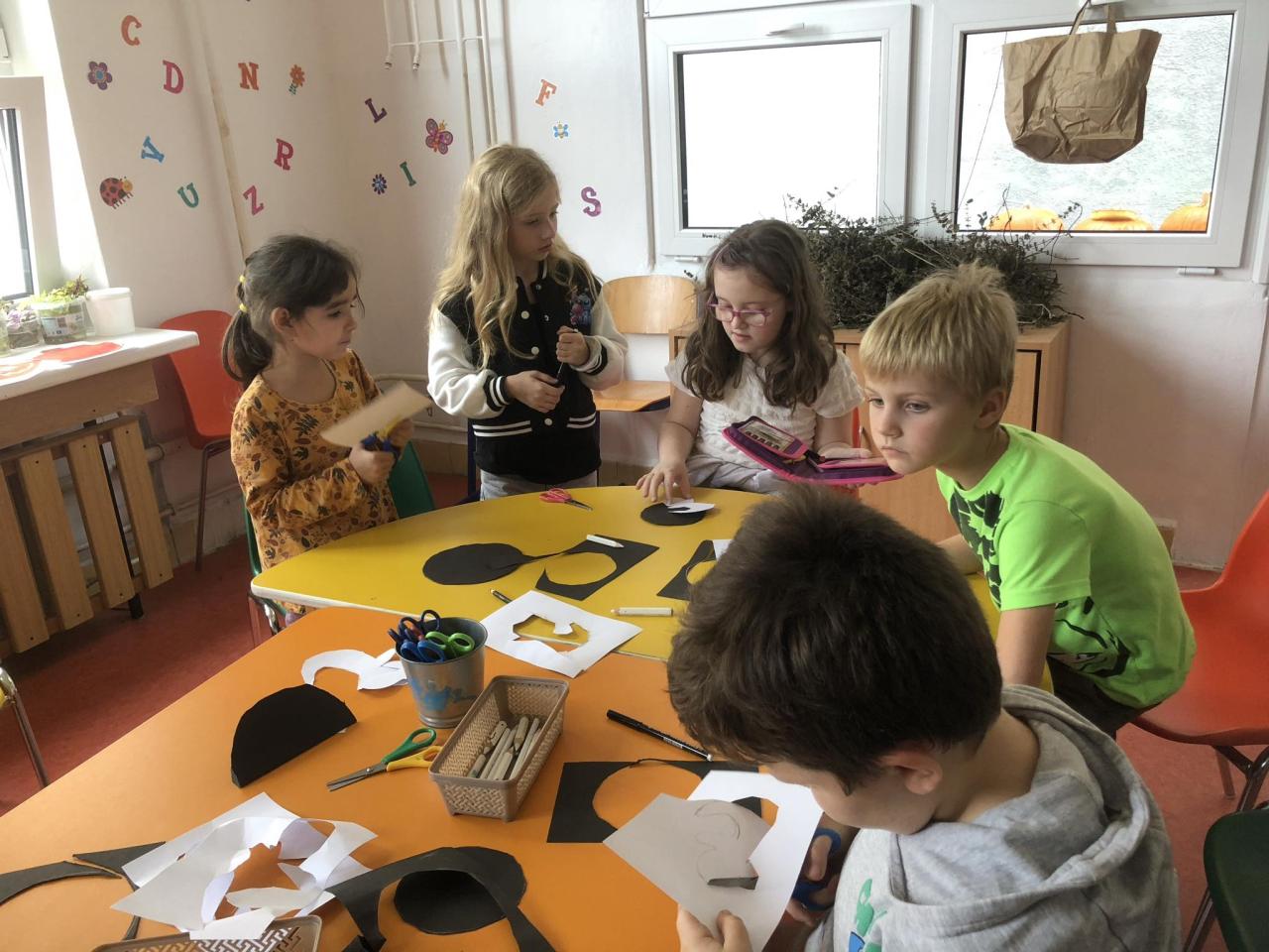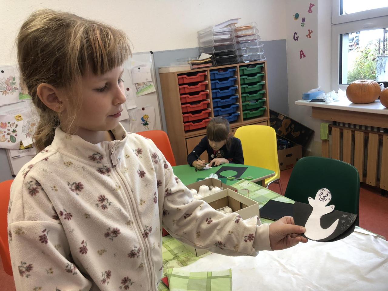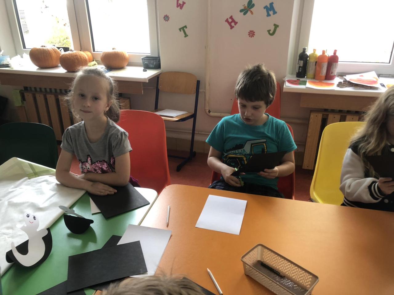 Pomocí šikovných rukou, nůžek, fixů, černého a bílého papíru vznikla "Halloweenská strašidla".