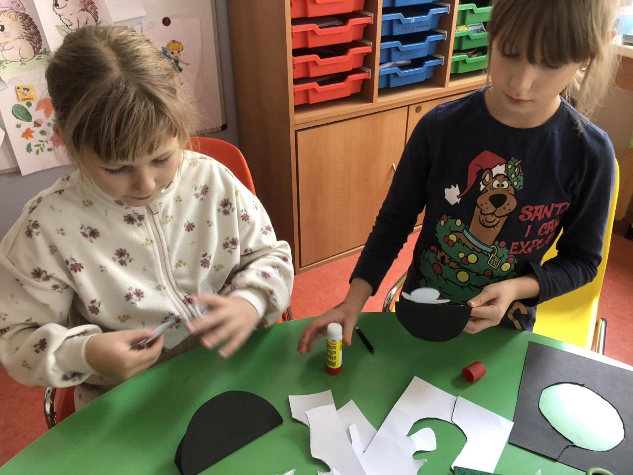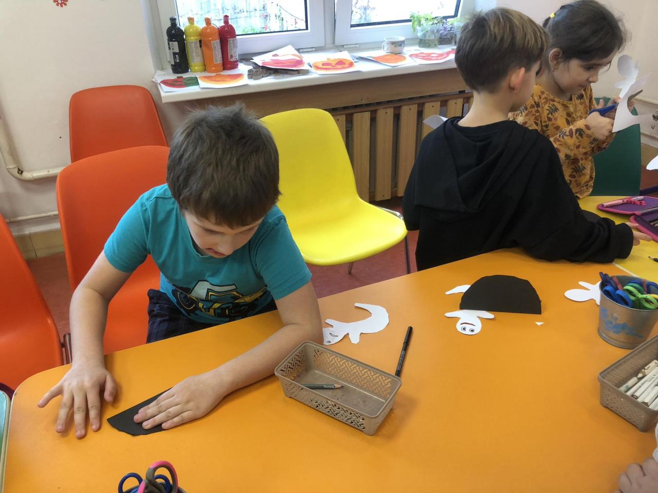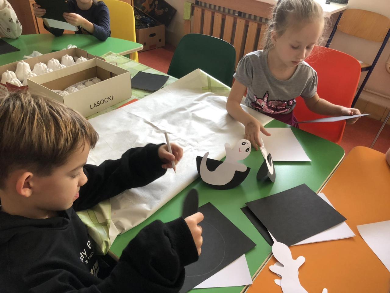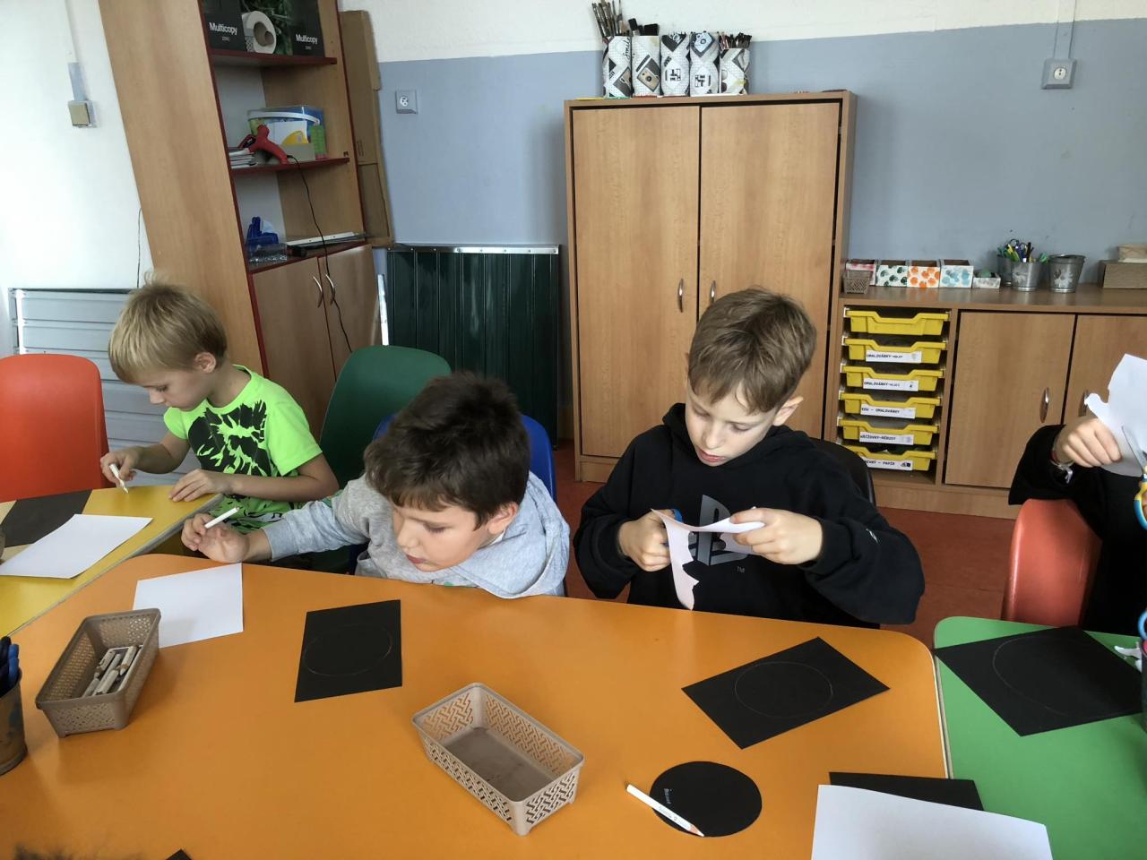 Pomocí šikovných rukou, nůžek, fixů, černého a bílého papíru vznikla "Halloweenská strašidla".