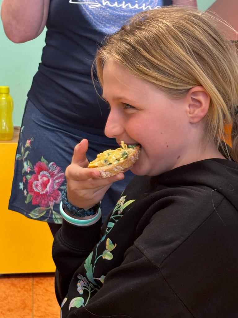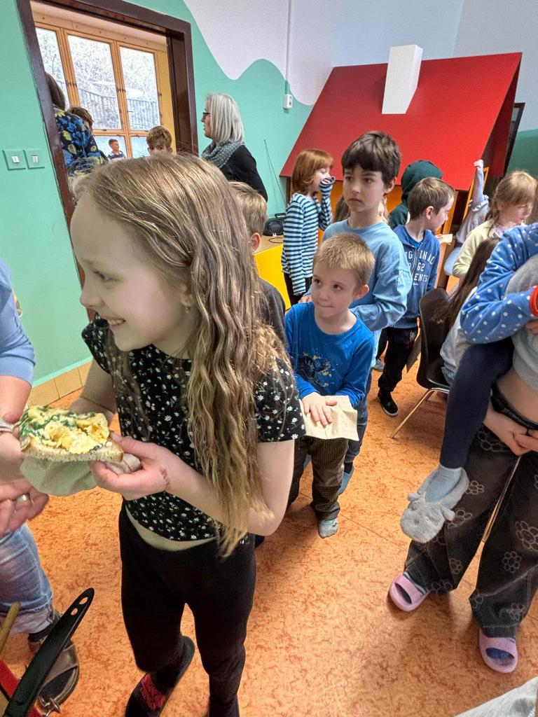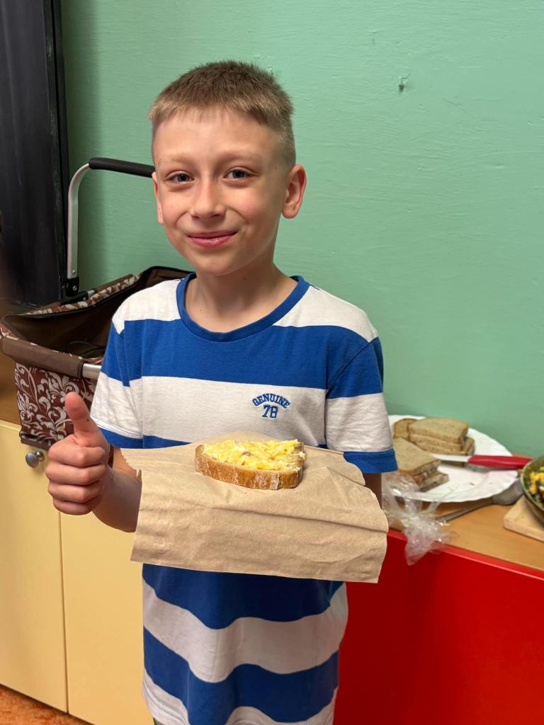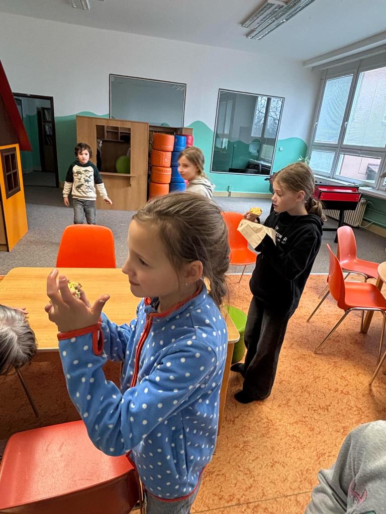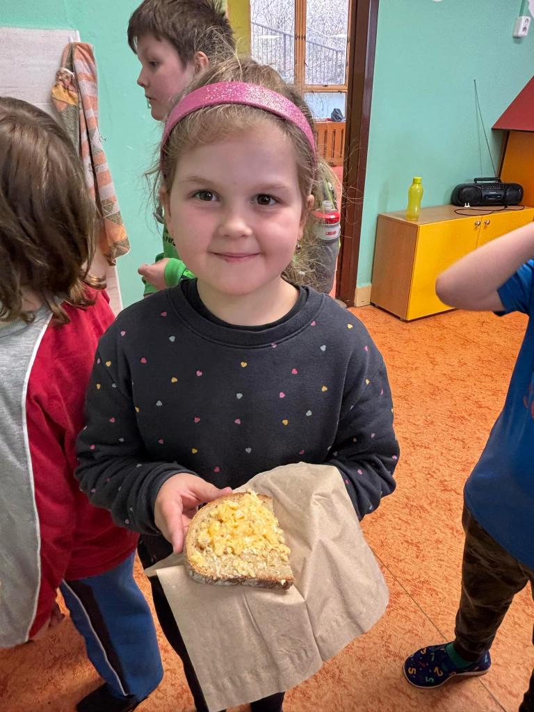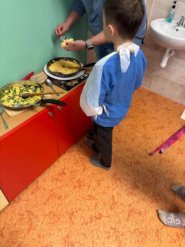 Vyfoukali jsme si vajíčka na zdobení a ve školní kuchyňce si připravili dobrotu - vaječinu s medvědím česnekem, ale také bez. To byla dobrota.....