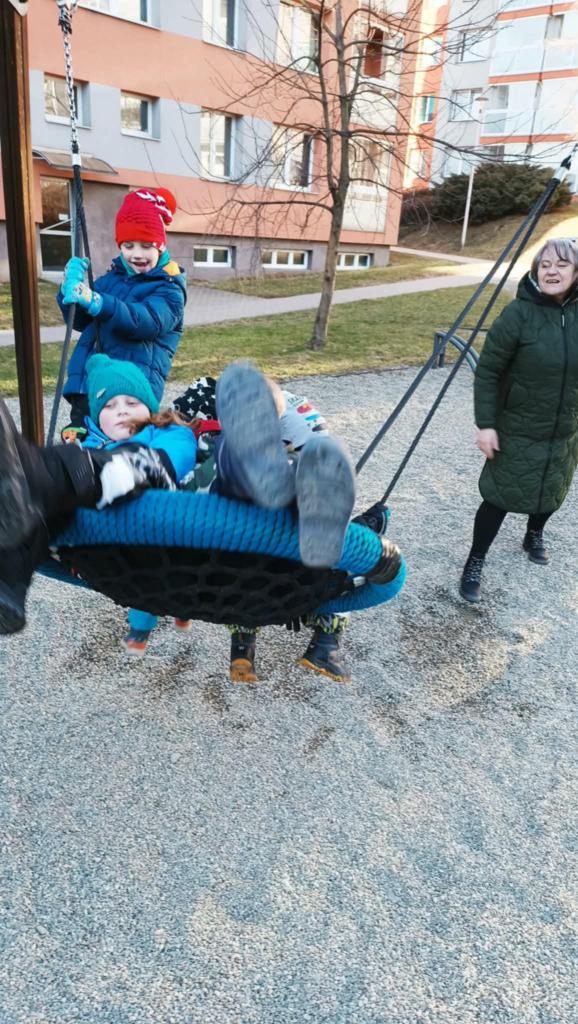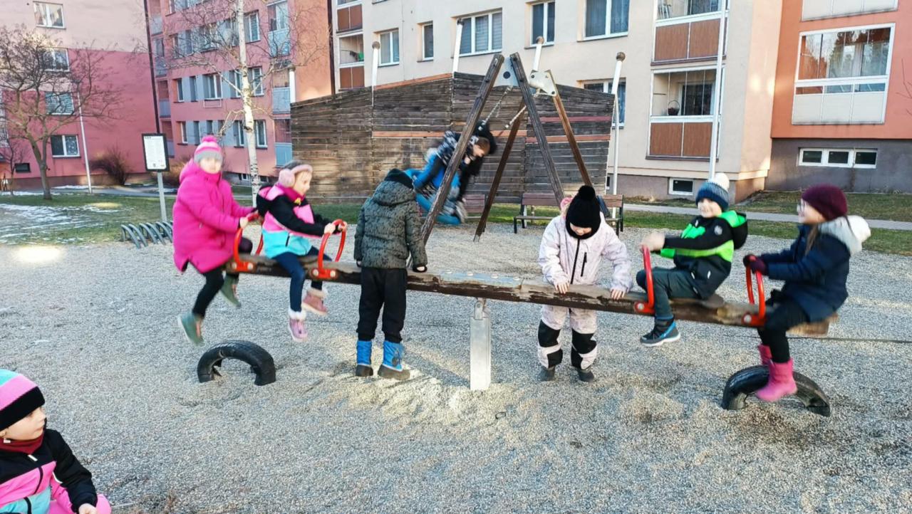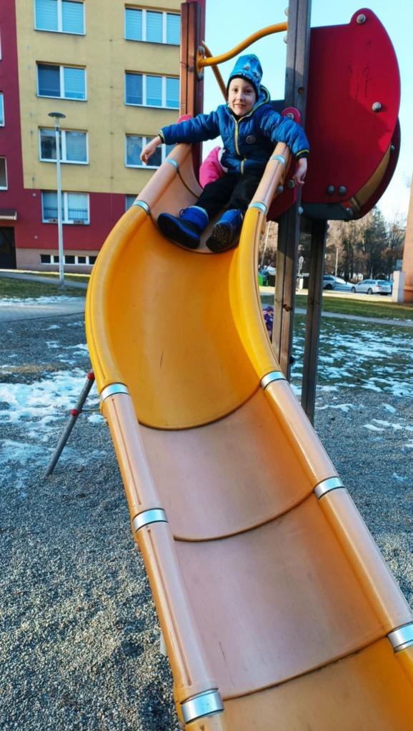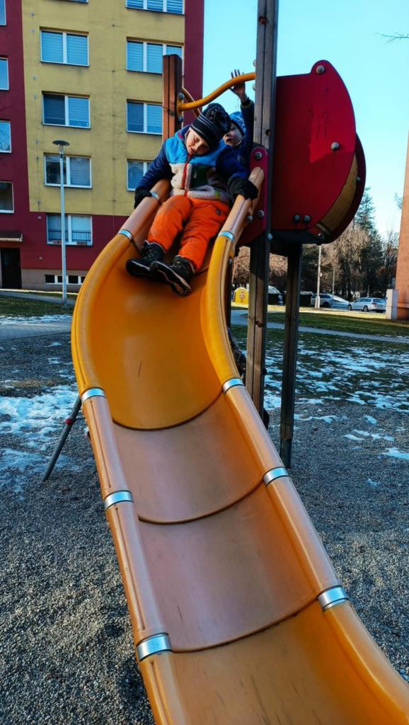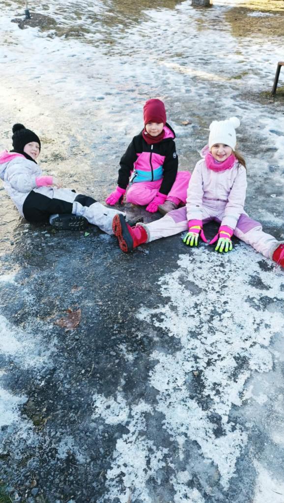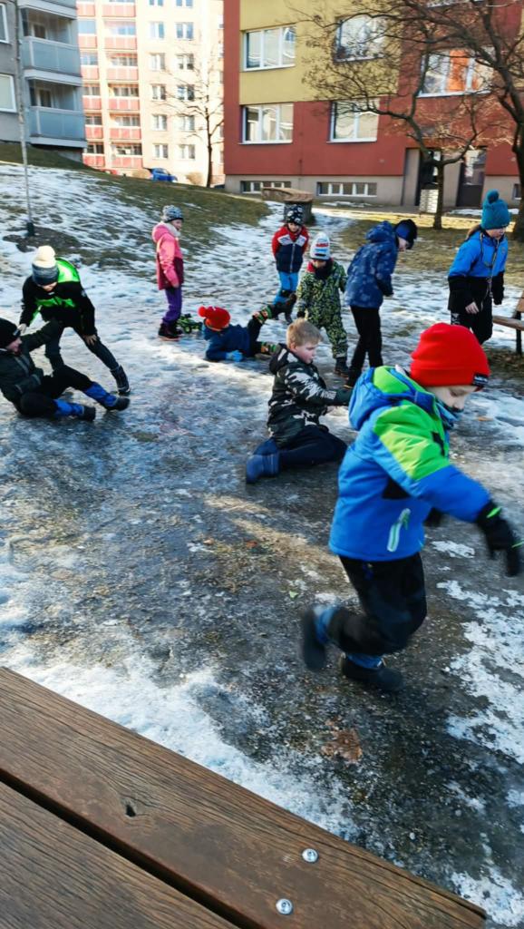 Vyrazili jsme na hřiště na sídlišti. Dobře jsme se pobavili, ale nejvíce nás zaujala ledová plotna, která tam zůstala díky mrazivému počasí.